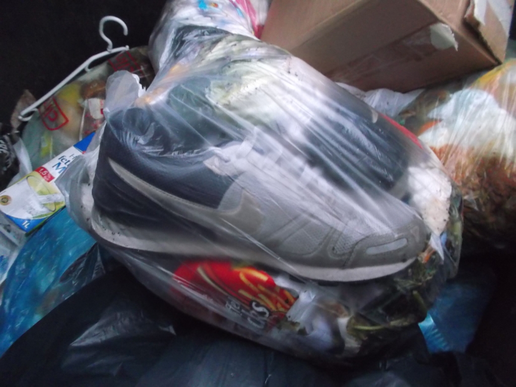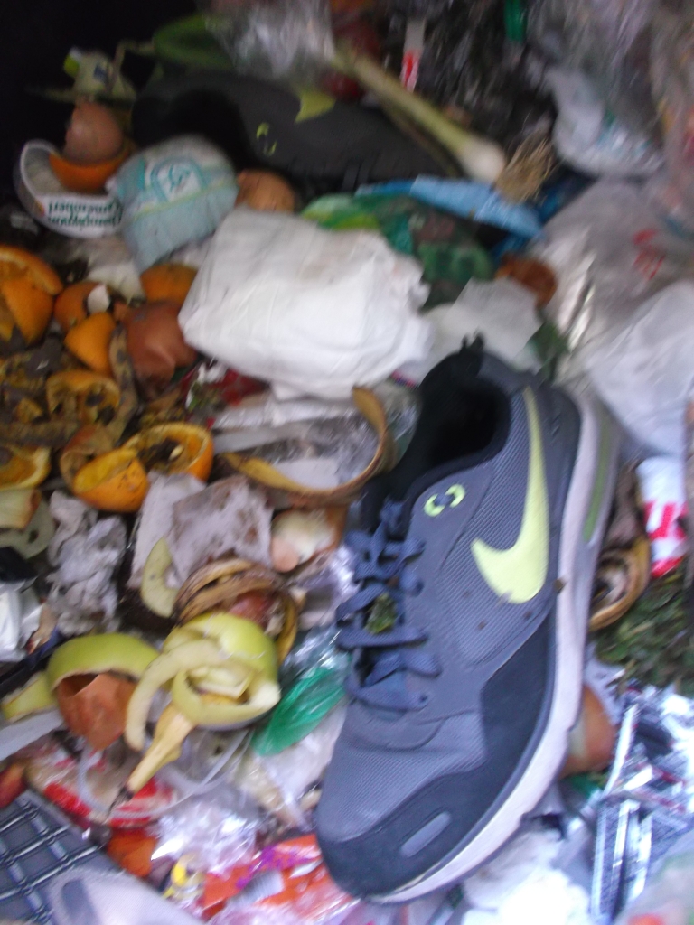 Die Nikes hatten sich schon gut in den übrigen Hausmüll "integriert".