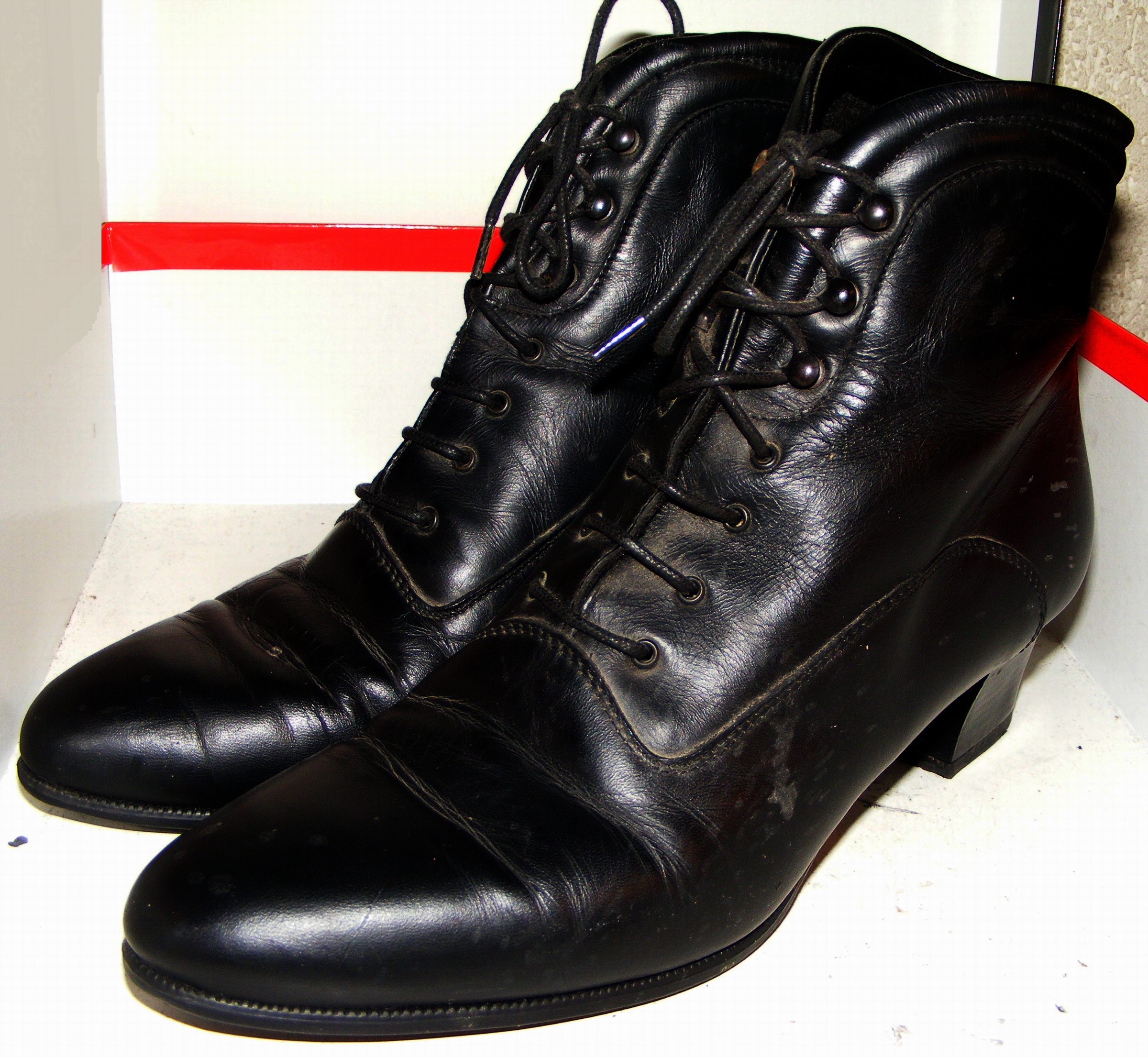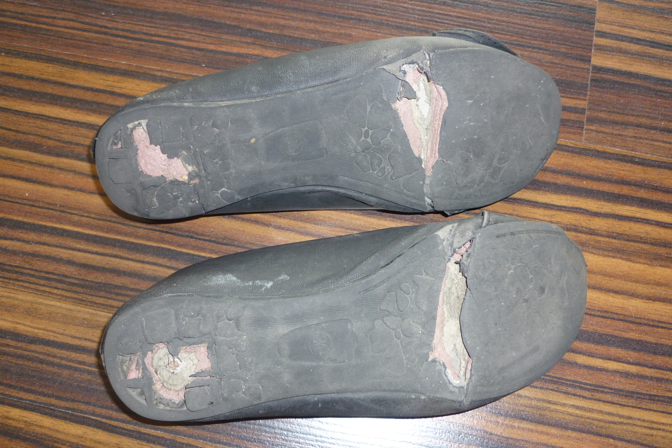 das sind ja geile Schuhe. Was müssen die viel getragen worden sein. Und im Verhältnis muss die Besitzerin sehr sorgfältig mit denen umgegangen sein, wenn man die abgenutzten Sohlen sieht, macht das Obermaterial eigentlich einen guten Eindruck.