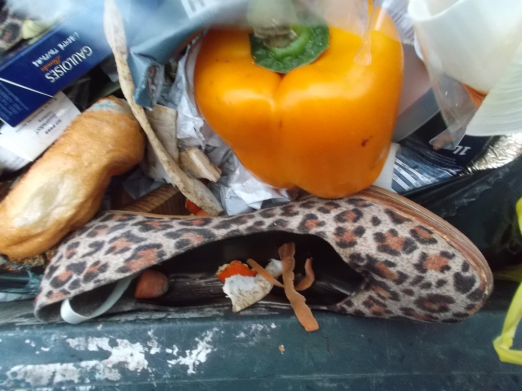 Ballerinas werden übrigens recht "unnormal" weggeschmissen: Selten als Einzelpaar im Küchenmüllbeutel, worein sie ja gut "passen", sondern oft als ganzer Stapel Ballerinamüll, oder als klassische Wechselschuhe in ausrangierten Handtaschen oder "vergessen" auch in Schrottautos. Stapelweise werden ausrangierte Ballerinas nicht selten mit anderen ausrangierten Schuhen und Stiefeln in großen Müllsäcken, Schuhschränken oder Kartons zum Sperrmüll gestellt oder gleich zur Mülldeponie gefahren und dort "verkippt".