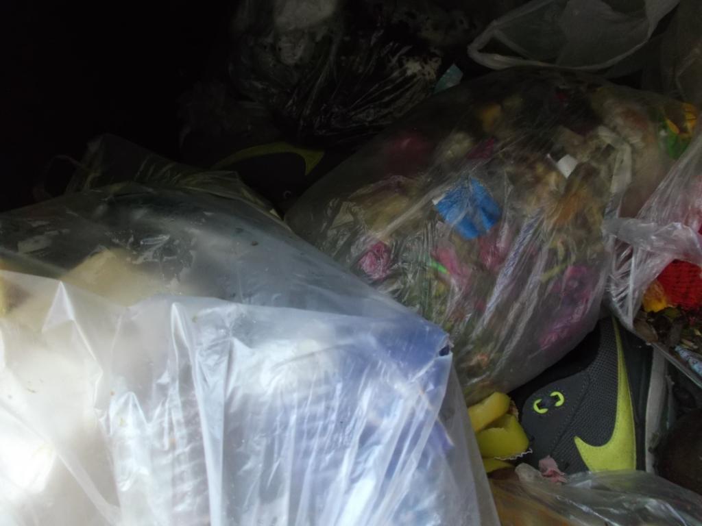 Auch eine schöne Kombination, der Altkleidersack und der Müllsack: Während der Inhalt des einen verwertet wird, gibt’s für den anderen nur den Weg ins Feuer. Als passionierter Sammler weiss ich natürlich, dass sich die Mädels oft schämen, ihre verwaschenen und löcherigen Höschen und die ausgeleierten Bh’s in den Altkleidersack zu geben und darum werden diese Dinge in den Abfallsack gestopft, damit niemand mehr sie zu Gesicht bekommen wird.