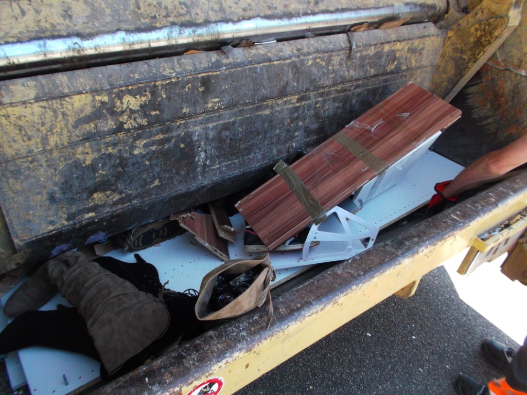 Beinahe wäre der Schuhschrank wieder wg. dem vielen schon gepressten Müll wieder über die Laderampe auf die Straße gekippt. Dies galt es zu verhindern, denn niemand wollte viele herum liegende Schuhe auflesen.