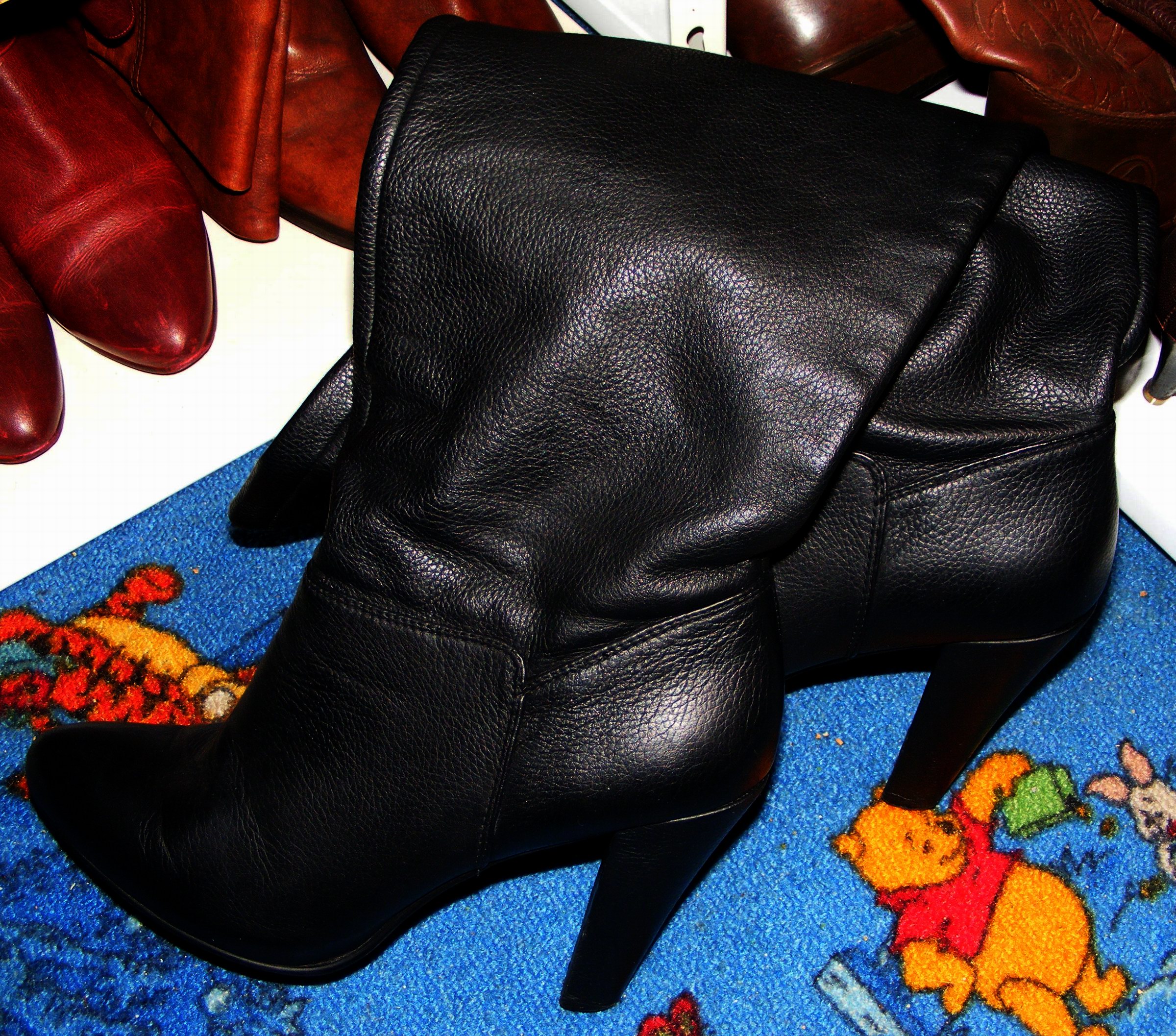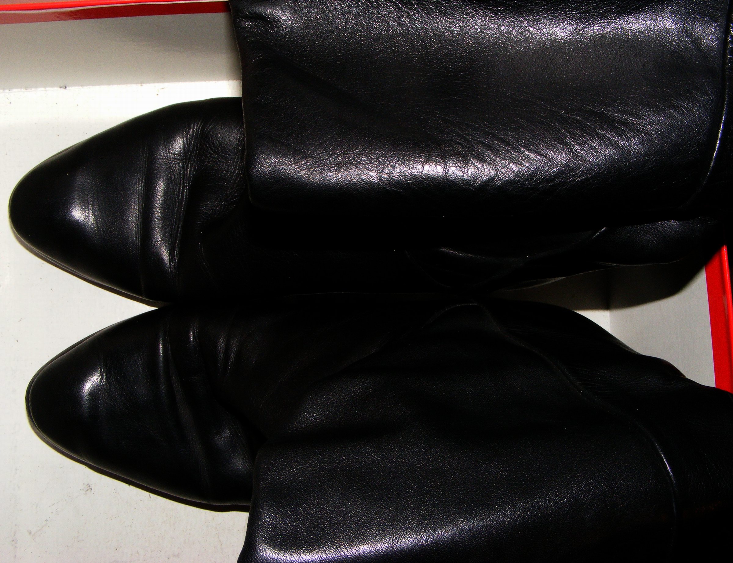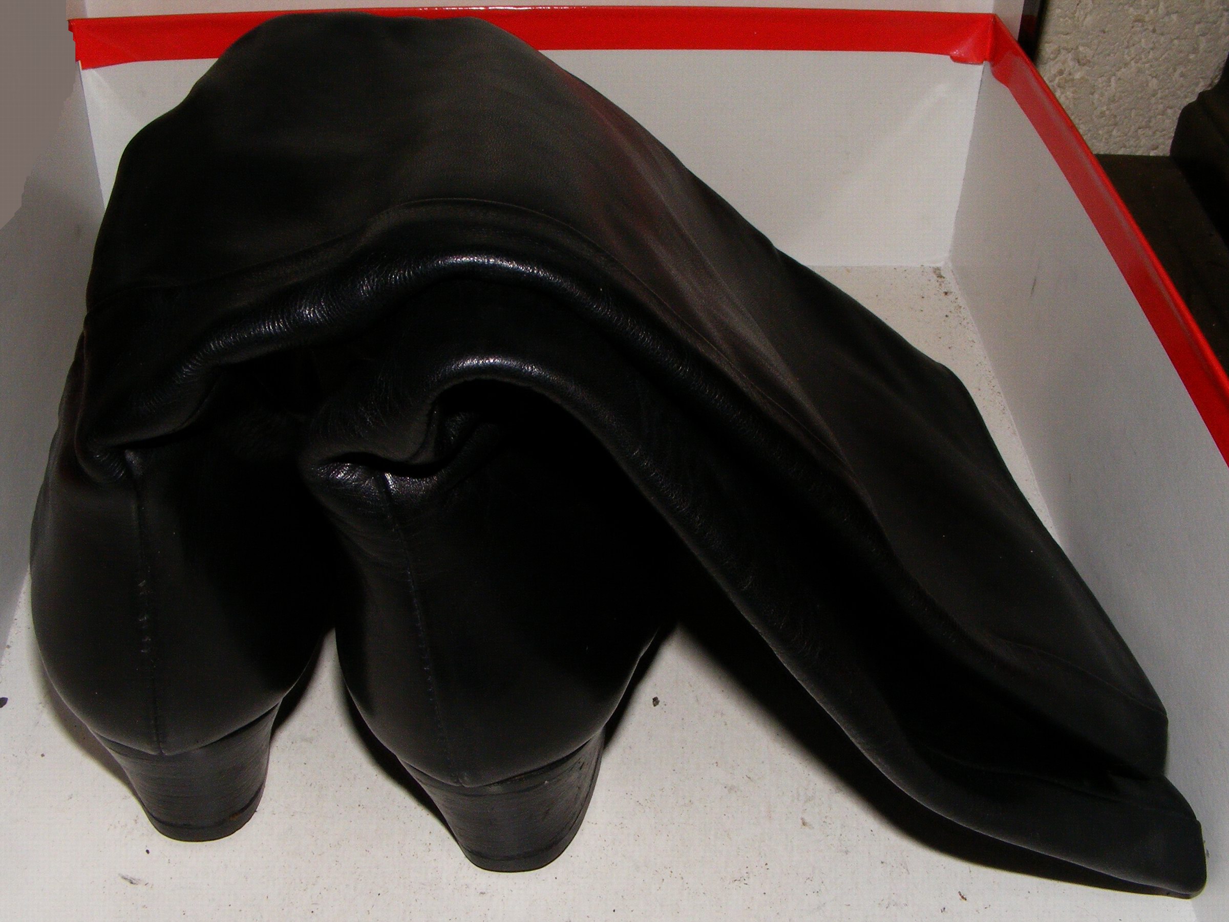 Mutti suchte sich also stets die schönsten Spangenpumps (meist aus schwarzem oder weißem Lackleder) heraus und übers Jahr dazu noch etwa vier-fünf Paar, meist braune Lederstiefel, flach und mit Absatz. Doch die Pakete enthielten auch "häßliche" Schuhe, insbesondere Plateaus, Sandaletten und viele Paare zu Kleine. Diese kamen, wie bereits Beschrieben, zumeist am Wochenende in den Küchenherd - die Stiefel meist in den Badeofen. Da ja ständig Ersatz eintraf, pflegte Mutti ihre Hausschuhe nicht, auch die Stiefel wurden Abgetragen und ebenfalls gleich nach der Ausmusterung mit Verfeuert. Die Schuhe/Stiefel, die ich mir dann so nach und nach für mich "abfischte", blieben von dieser Prozedur vorerst verschont (ich berichtete bereits). Doch zurück zu Muttis Stiefeln.