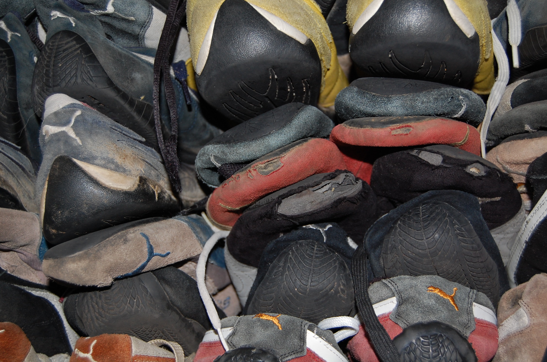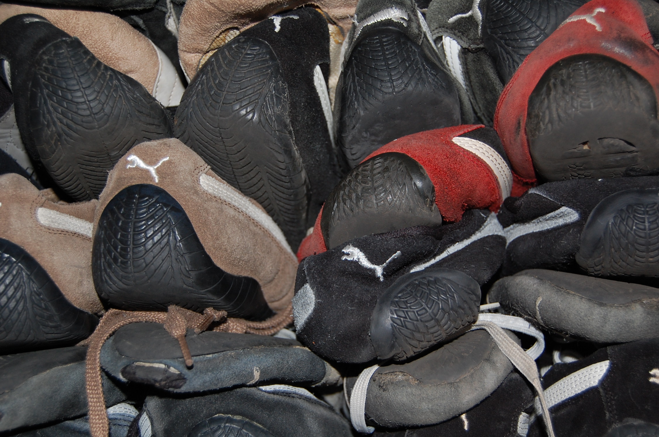 In diesem Frühjahr stieß Paul bei Aufräumarbeiten auf die vergessenen Pumas. Es mögen über 75 Paare gewesen sein. Die noch tragbaren Exemplare wurden heraussortiert und via Paket auf den afrikanischen Kontinent verschickt. Die aufgetragenen und kaputten Paare kamen weg.