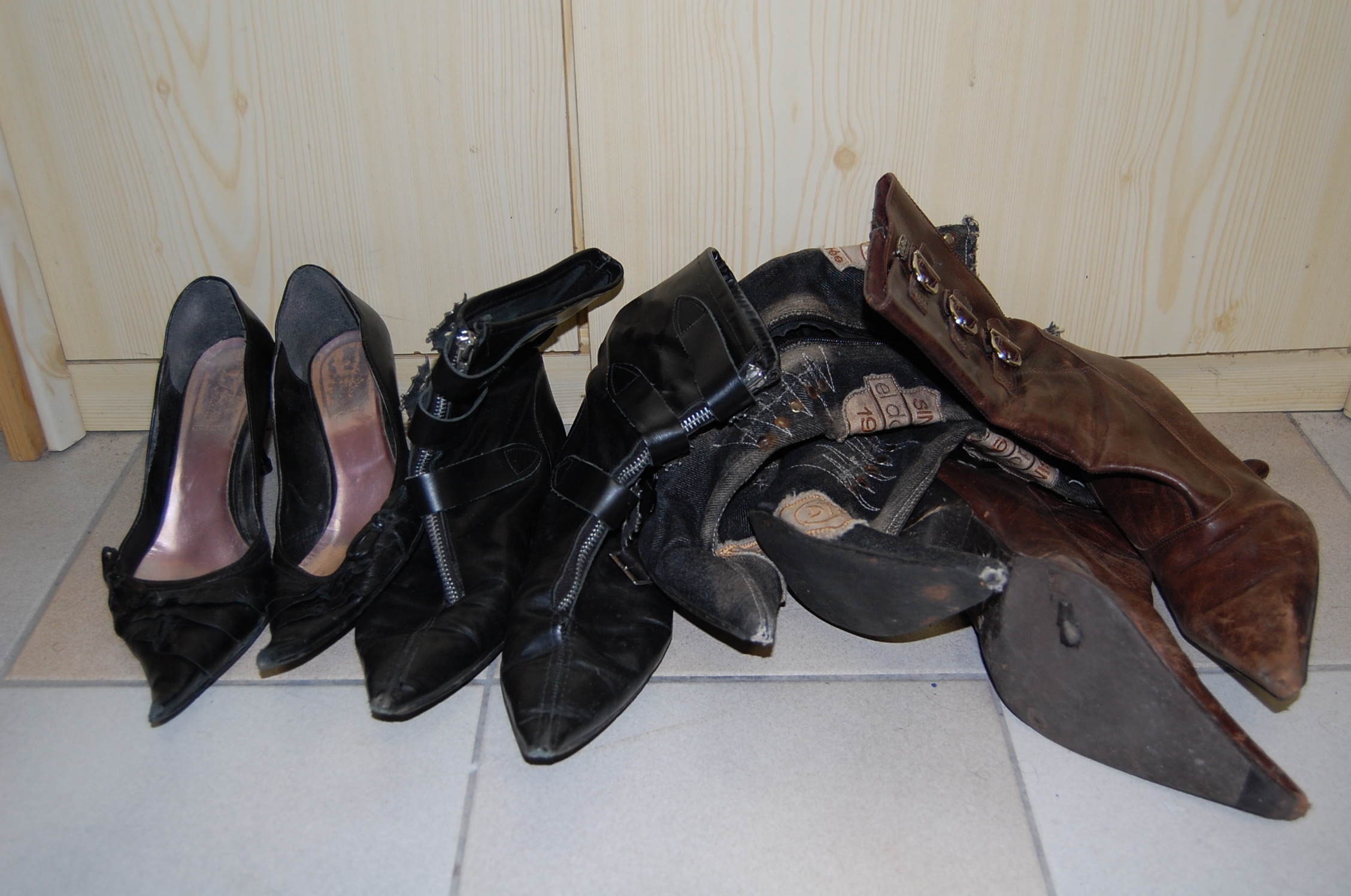 Pointy-Girl bringt mich beim Anblick der ausrangierten Pumps und Stiefel schon aus der Ruhe. Die Großfotos von den Pumps sind sowas von geil