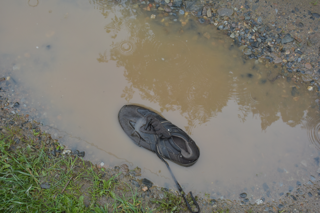 Auf einem Zufahrtsweg sah ich etwas "Verdächtiges" in einer Pfütze liegen,die Neugier packte mich,also hin und habe mir das genauer angeguckt,es handelte sich um einen abgelatschten Memphis One Schuh Gr.42 ,vom Partner leider weit und breit keine Spur....