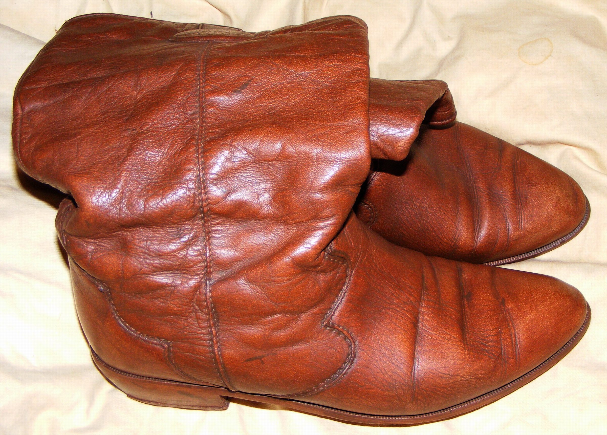 Selbstverständlich ist die Lederhose geil - doch ich glaube, die Farbschattierungen des faltigen Leders dieser wundervollen braunen Stiefel zeigen noch deutlicher und erregender die Vorzüge dieses herrlichen Materials.