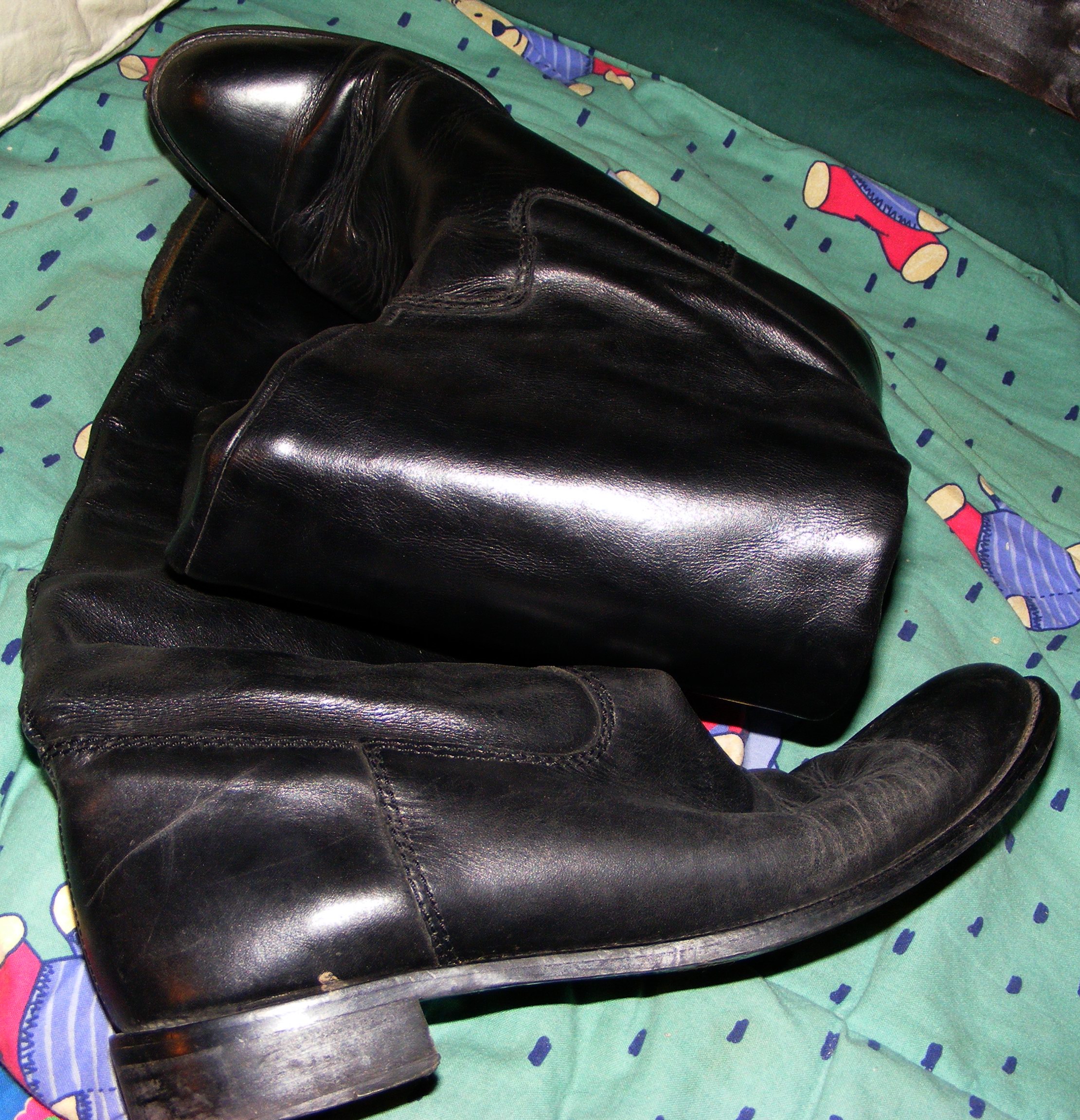 Selbstverständlich ist die Lederhose geil - doch ich glaube, die Farbschattierungen des faltigen Leders dieser wundervollen braunen Stiefel zeigen noch deutlicher und erregender die Vorzüge dieses herrlichen Materials.