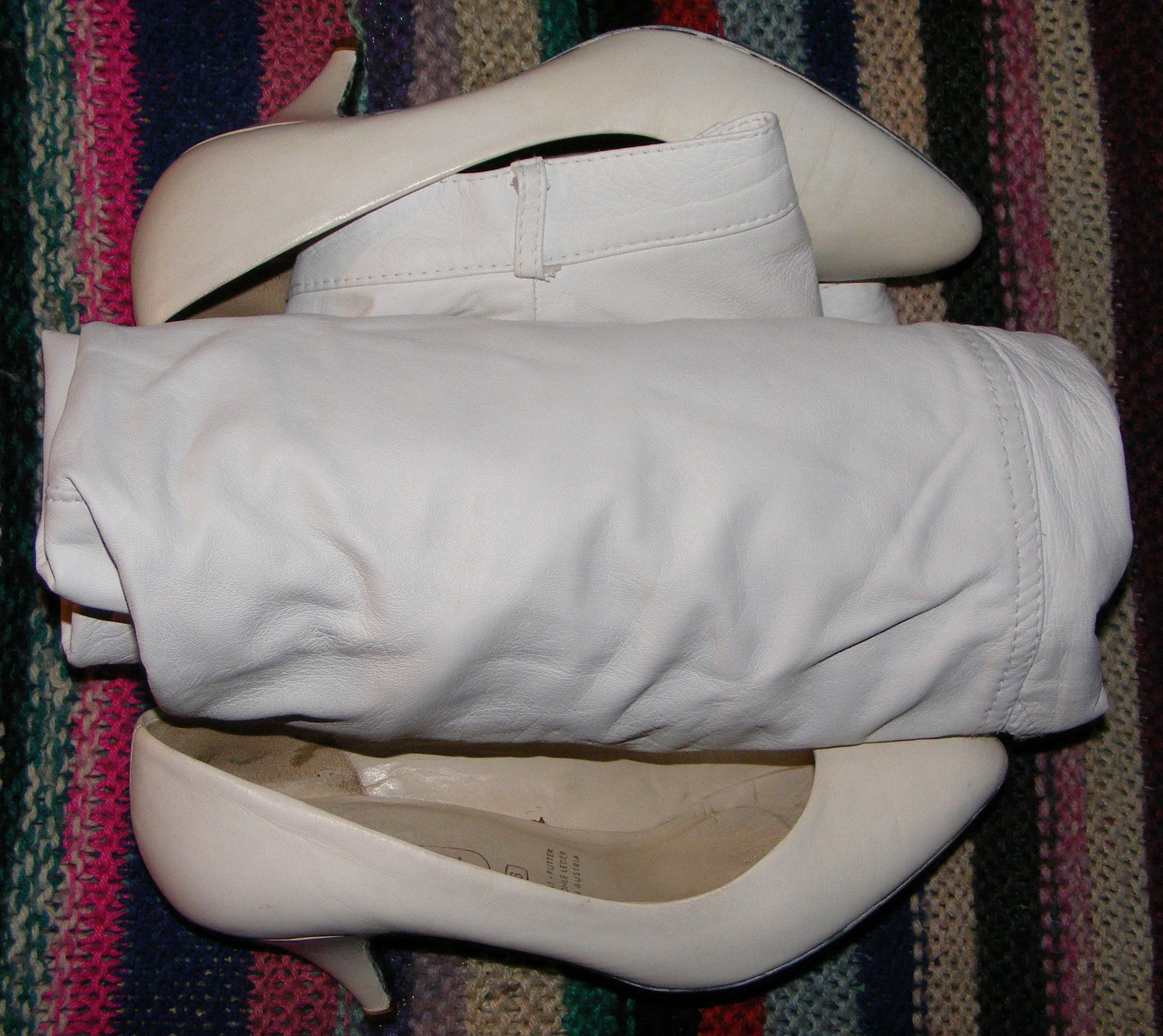 Da ich glaube, sie gehören bereits zu der vom lieben Burner1973 angeregten Kampagne "schützenswerter Vintage-Pumps", werden sie natürlich nicht verfeuert - besonders die schönen, sexy Roten (in Kombi mit nude-Strumpfhosen) ziehen unter weißen Hosen noch immer deutlich die Blicke der "Gaffergemeinde" auf sich!