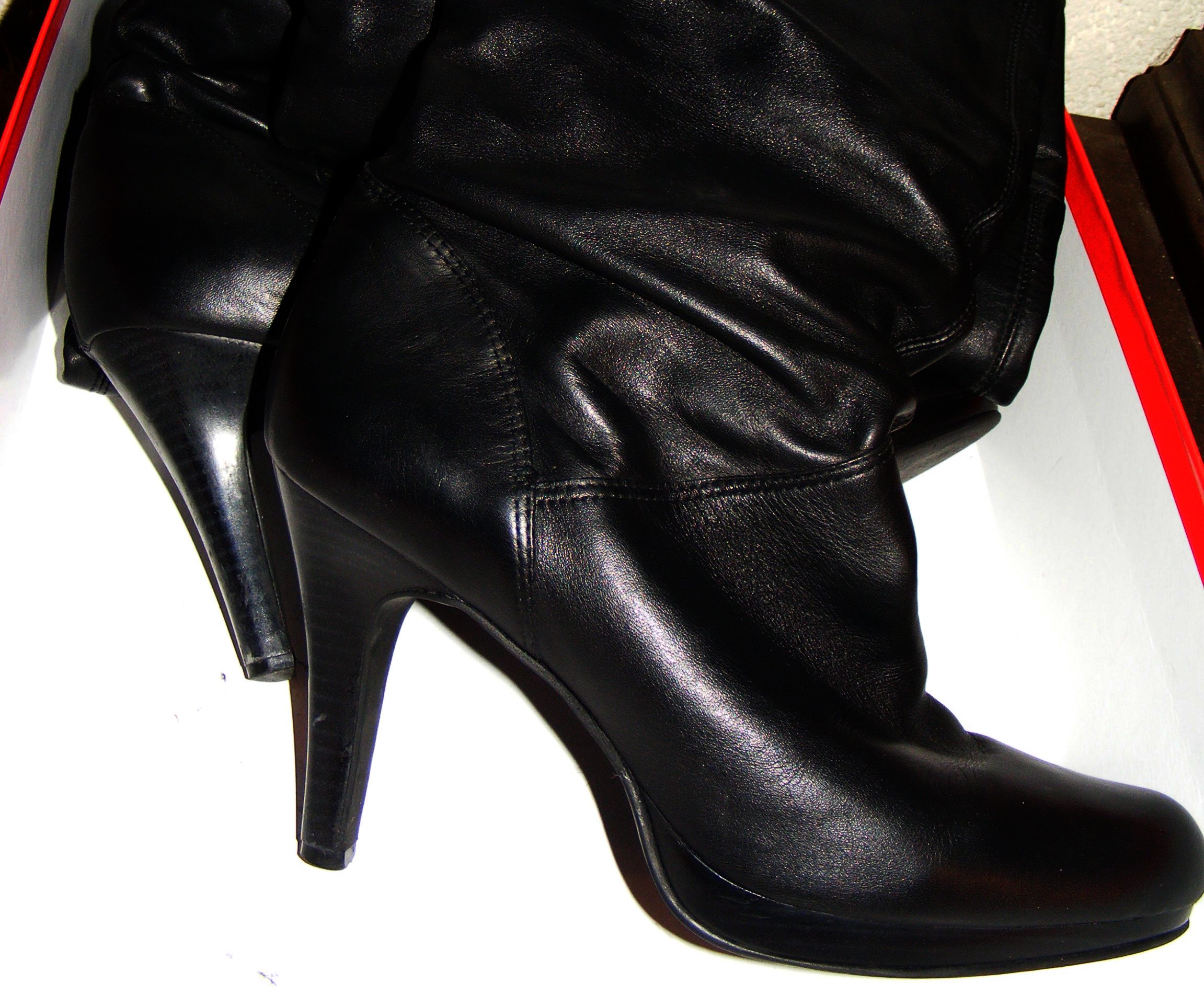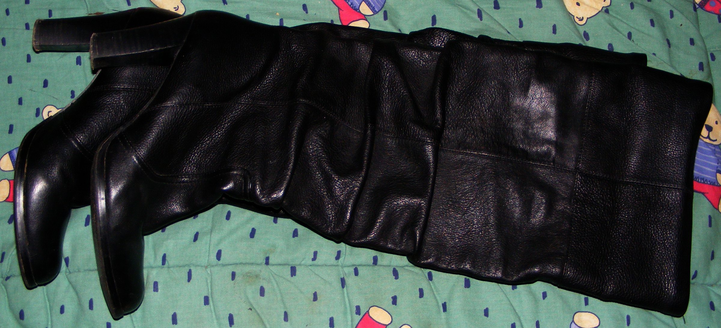 Diese Stiefel hatte meine BF im Sperrmüll gefunden und sie sollten, wie bei ihr üblich, entweder im Küchenherd oder ihrem Badeofen verheizt werden. Nun haben wir ja das "Abkommen", daß sie für mich schöne Lederstiefel in meiner Größe Zurückstellt und dann ggf. gegen Sandaletten, Ballerinas oder Pumps zum Verfeuern eintauscht. So geschehen auch bei diesen Teilen. Die Dinger habe ich bei ihr in der Küche Anprobiert - ich mußte mich Zusammenreißen, daß mir nicht dabei gleich Einer abging