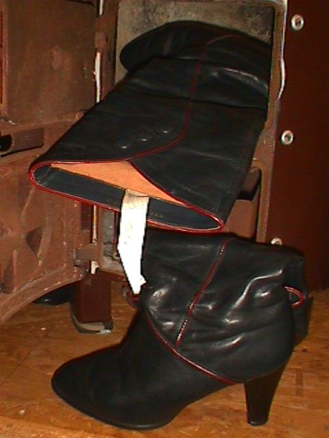 Und, für alle Anderen: Die versprochenen Leder-Stiefelchen von der Müllkippe (gefunden 1996)!
