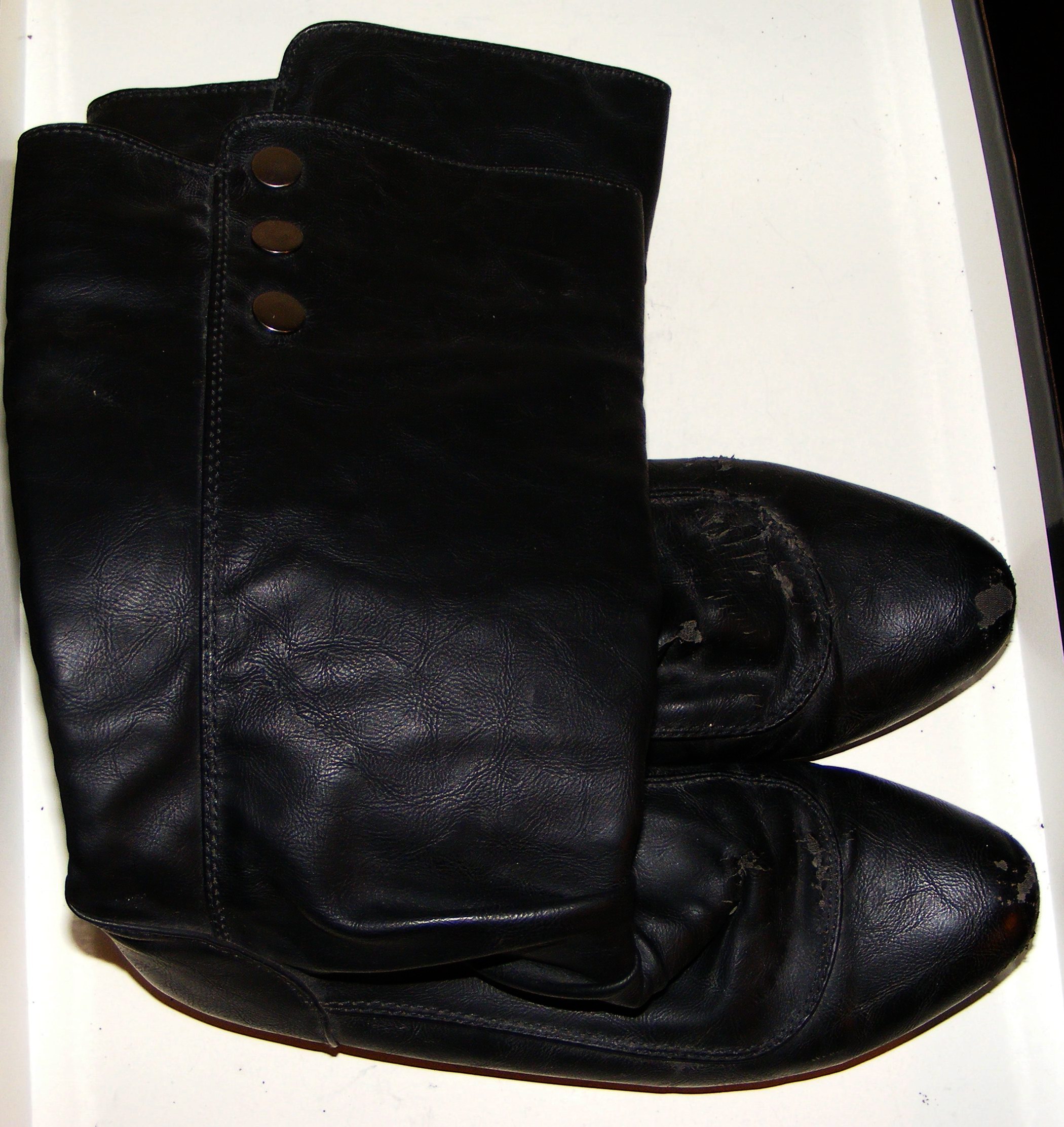 "Kräftig benutzt": Ab einer gewissen "Nutzungsschwelle" geht bei mir die Errgegung beim Weitertragen erst so richtig los! (Bild 1) Ich habe schon so Vieles aufwändig Repariert - besonders bei Stiefeln ist mir ein "gutgebrauchter" Zustand total wichtig! (Bild 2)