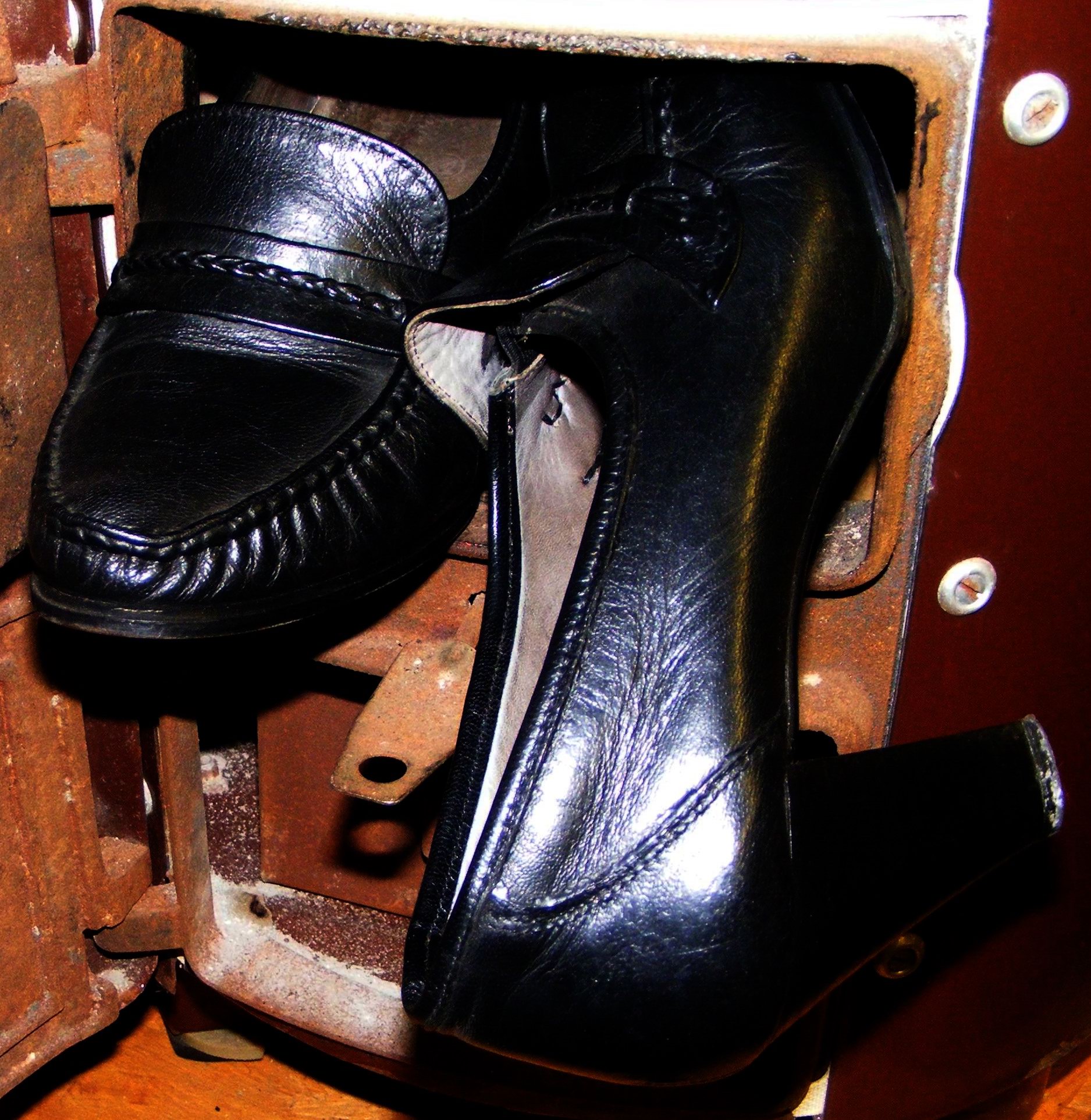 Meine Damals wie Heute geliebten DDR-Mokassin-Pumps, kurz vor dem seinerzeit unvermeidlichen Ende im Ofen. :cry: :cry: :cry: