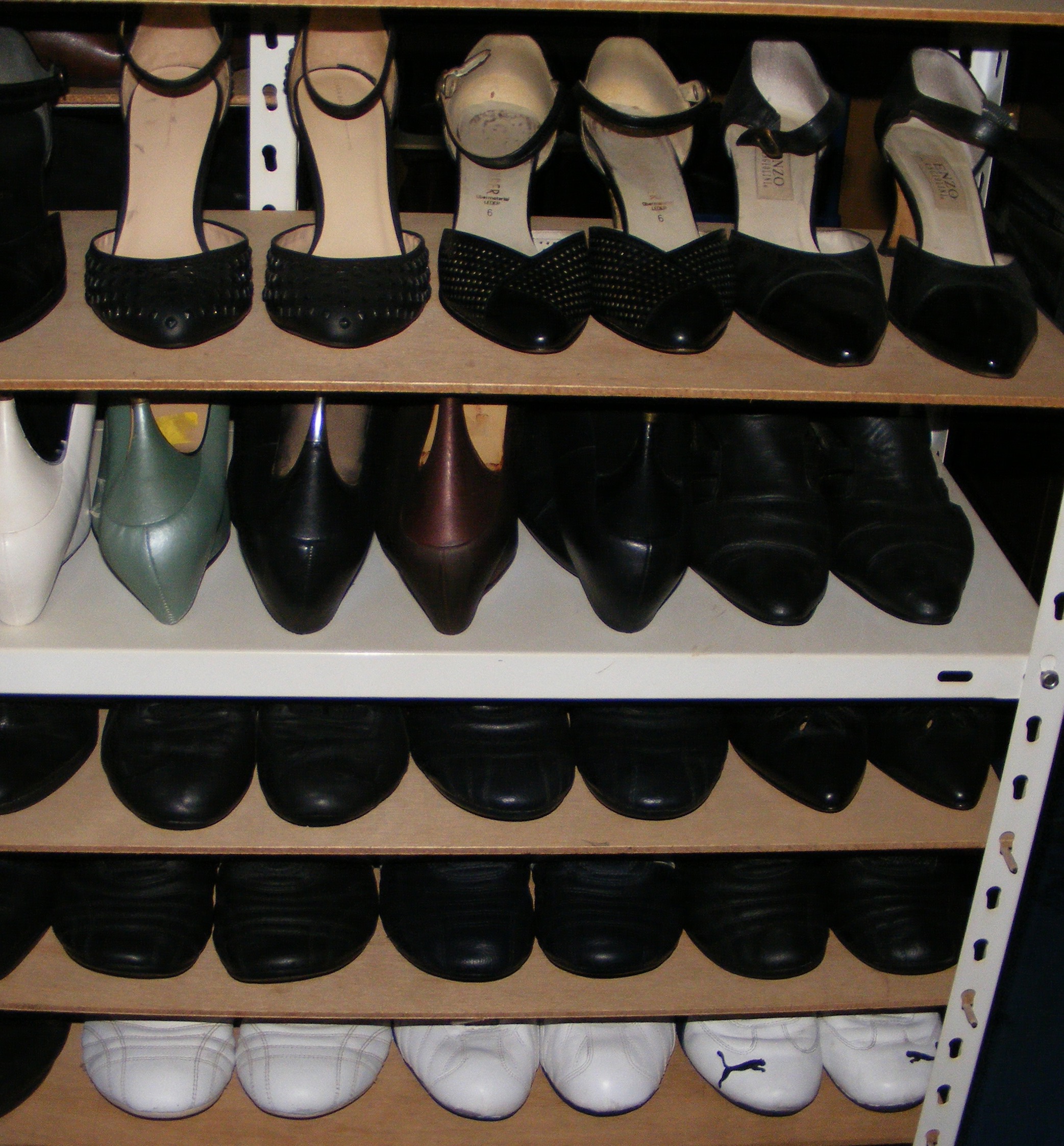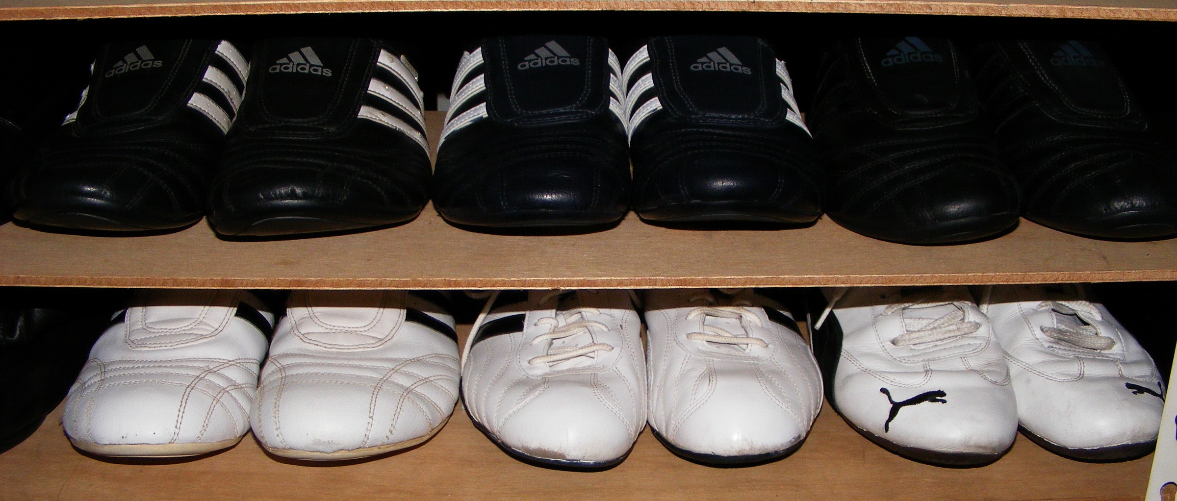 Nachdem ich in verschiedenen "Abteilungen" des VNF Gelesen habe, daß es doch mehr männliche Adidas SM II-Fans gibt, als bisher gedacht - diese Schuhe gefallen also nicht nur uns Mädels? Nun, mal ein kleiner Blick in meinen "Schuhschrank" (die neuwertigen Weißen, die ich im Schlafzimmer habe, hatte ich euch ja schon gezeigt). Ich nehme an, so ähnlich wird es bei den meisten Frauen bezüglich ihrer "Trageschuhe" aussehen. Zahlreiche restlos Abgetragene habe ich ja nun auch schon verbrannt, dafür wurden die ausgemusterten Schwarzen meiner NT nochmals Aufgearbeitet. Die "Können" noch eine Weile ... :P