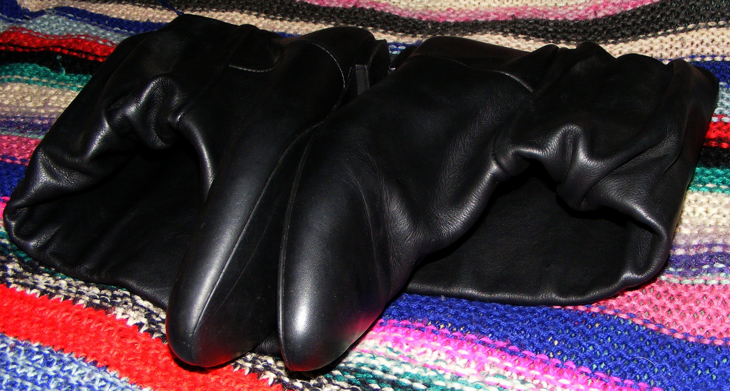 Noch ein Beispiel: Ich bin auf einer Party, meine (auch beim Publilum äußerst beliebten) Kettenzaras, kombiniert mir einer engen schwarzen Lederhose (Bild 3), ein liebevolles "Shoeplay" mit Anfassen wird von den Gegenübern sehnsüchtig erwartet - und (fast) Jede/r weiß, daß ich für mein Leben gern Leder verbrenne.