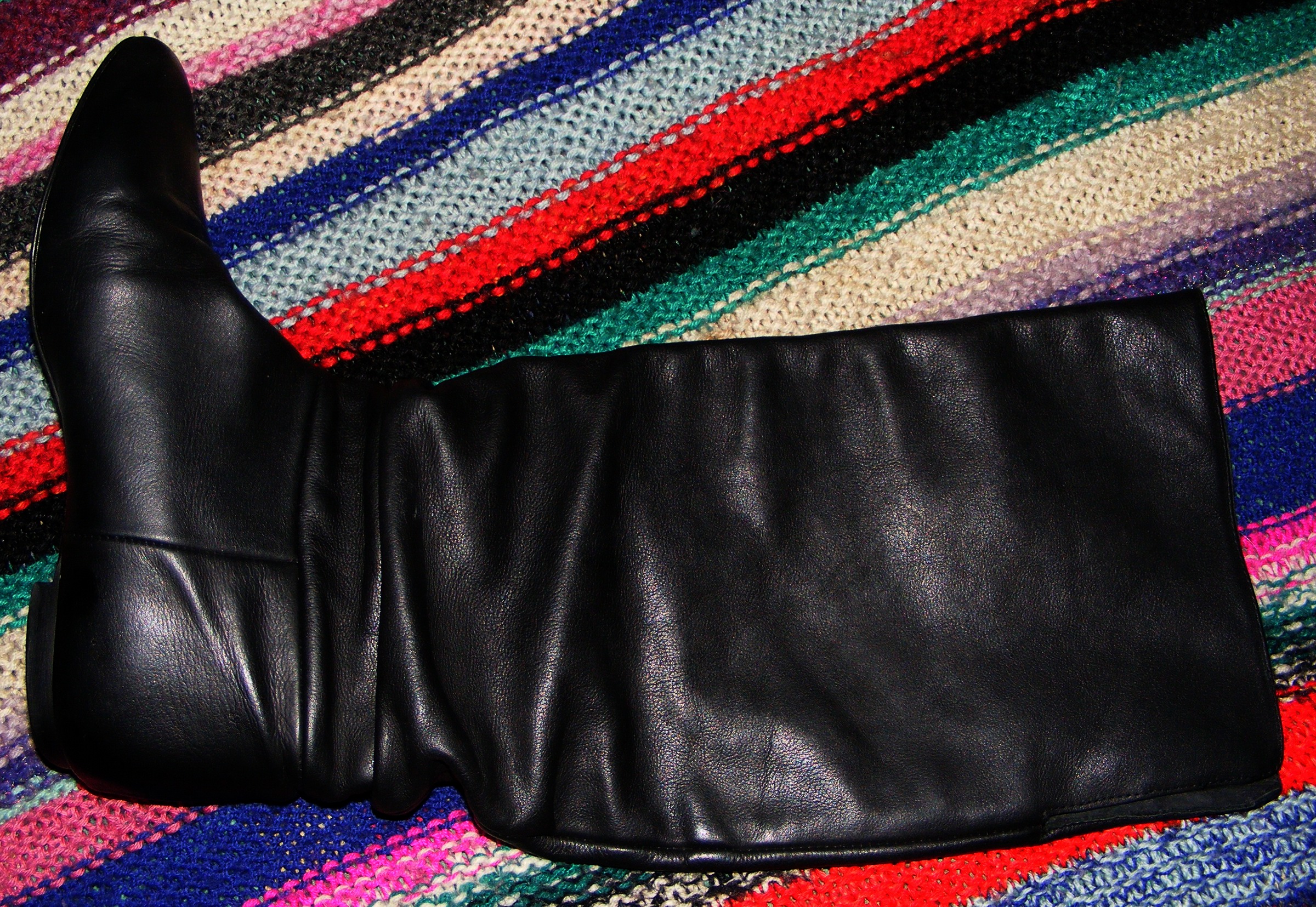 Noch ein Beispiel: Ich bin auf einer Party, meine (auch beim Publilum äußerst beliebten) Kettenzaras, kombiniert mir einer engen schwarzen Lederhose (Bild 3), ein liebevolles "Shoeplay" mit Anfassen wird von den Gegenübern sehnsüchtig erwartet - und (fast) Jede/r weiß, daß ich für mein Leben gern Leder verbrenne.