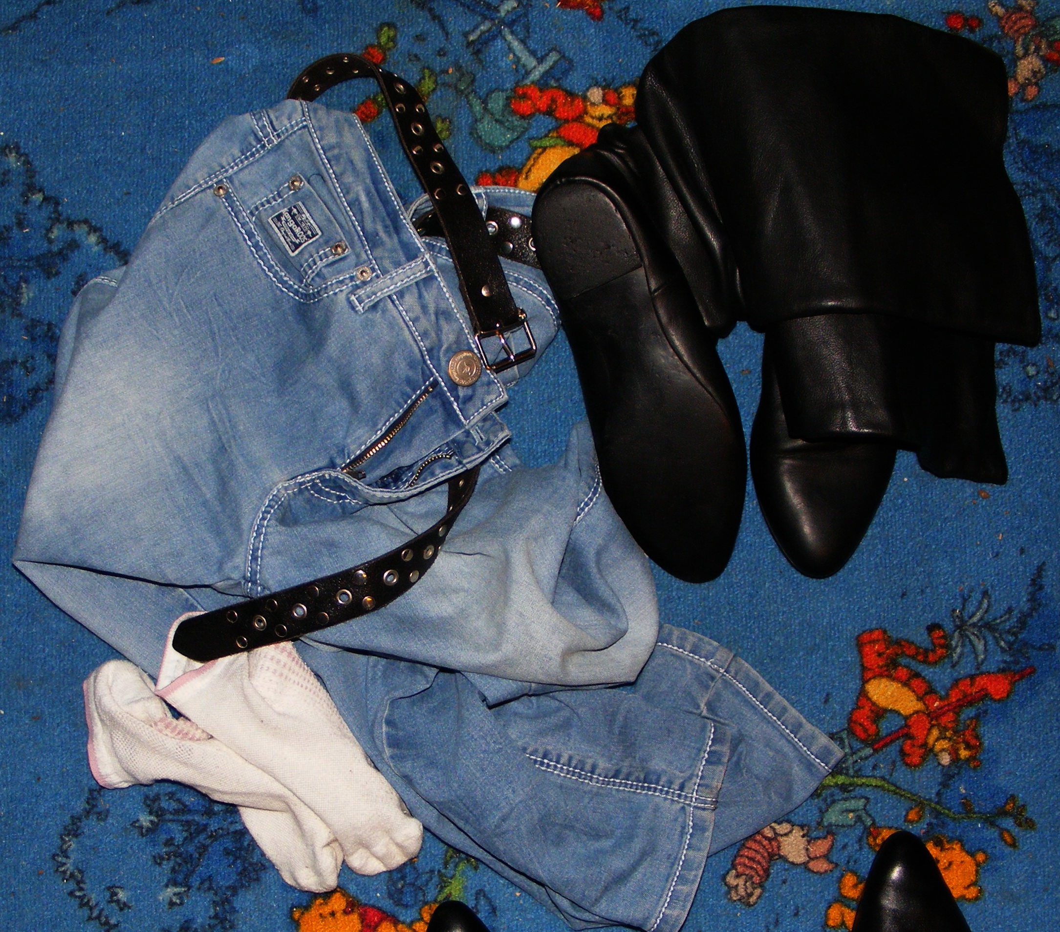 So, das "Schwerste" wäre geschafft! Nun noch die Stiefel mit einem Küchentuch abgewischt und dann zurück zum Fernsehprogramm. Er legt sich meine nun wieder parallelen Beine auf seine, massiert mit den Händen die Schenkel oder Außenseiten der Füße.