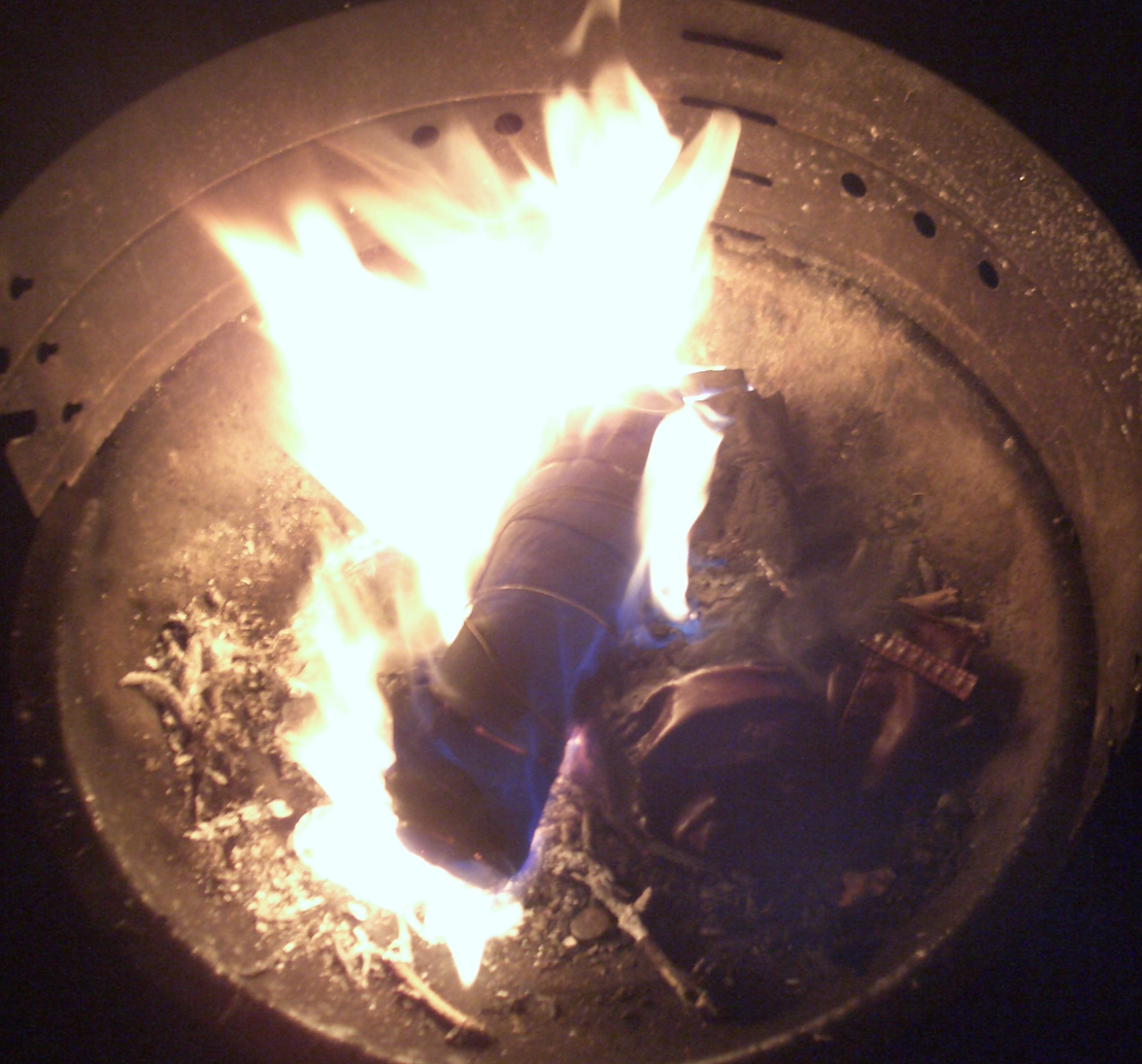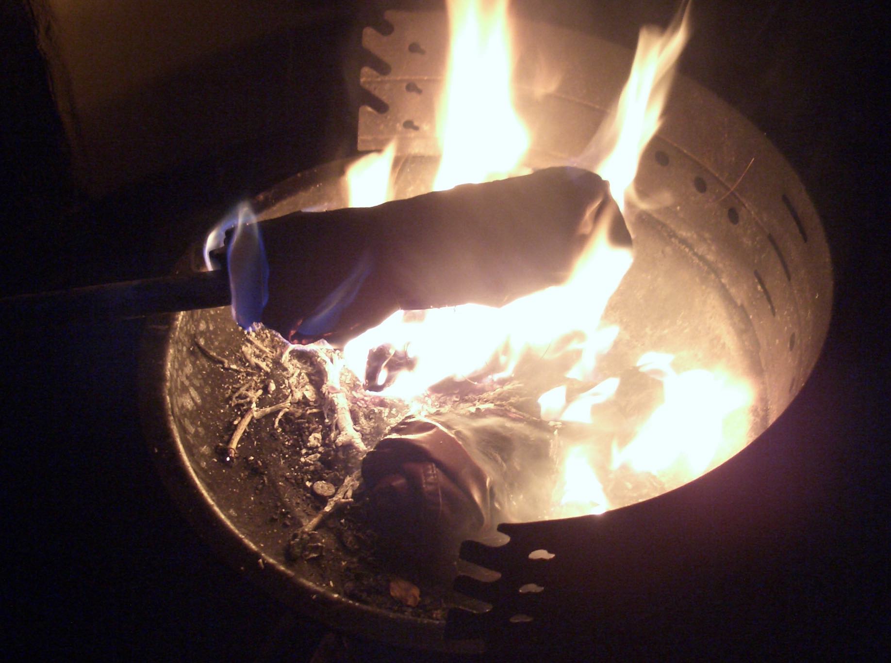 Die leichten Knautschlackschäfte ließen sich einfach um den Fußteil Wickeln und paßten somit gut in die kleine Herdöffnung ... Das Obermaterial verbrannte meist ziemlich schnell im heißen Ofen, beim Nachlegen war meist nur noch der Absatz des vorherigen Stiefels zu Erkennen.