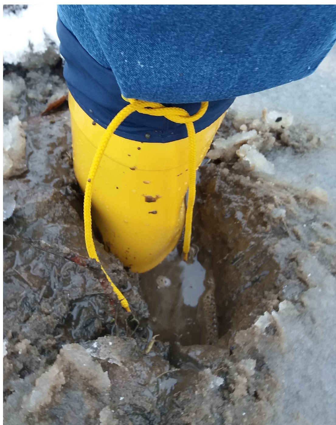 Geil! Rein in den Matsch and dann den Gummistiefel heftig hin- und herdrehen.