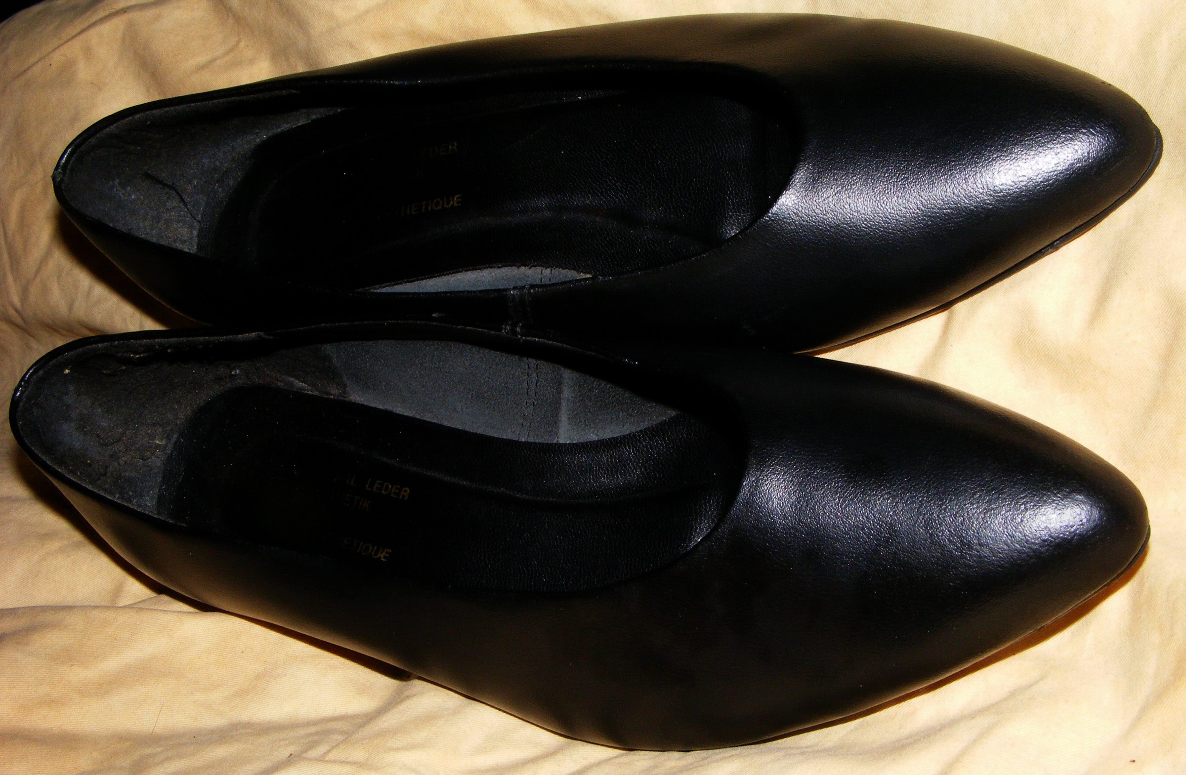 Vorher hatte sie ein Paar 1990er Reno-Vintagepumps an, ebenfalls kürzlich erfolgreich vom Sperrmüll gerettet (es war ein mit zumeist abgelatschten Marken-Sneakers gut gefüllter alter Klappen-Schuhschrank, ähnlich der bereits vom lieben Jan66 veröffentlichten Serie) - auch diese darf ich euch gern hier Zeigen. Sind zwar nichts Besonderes (davon habe ich etwa 30 Paar in Schwarz, Rot und Weiß), aber das weiche Leder ist ungefüttert, äußerst angenehm als Arbeitsschuhe zu Tragen!