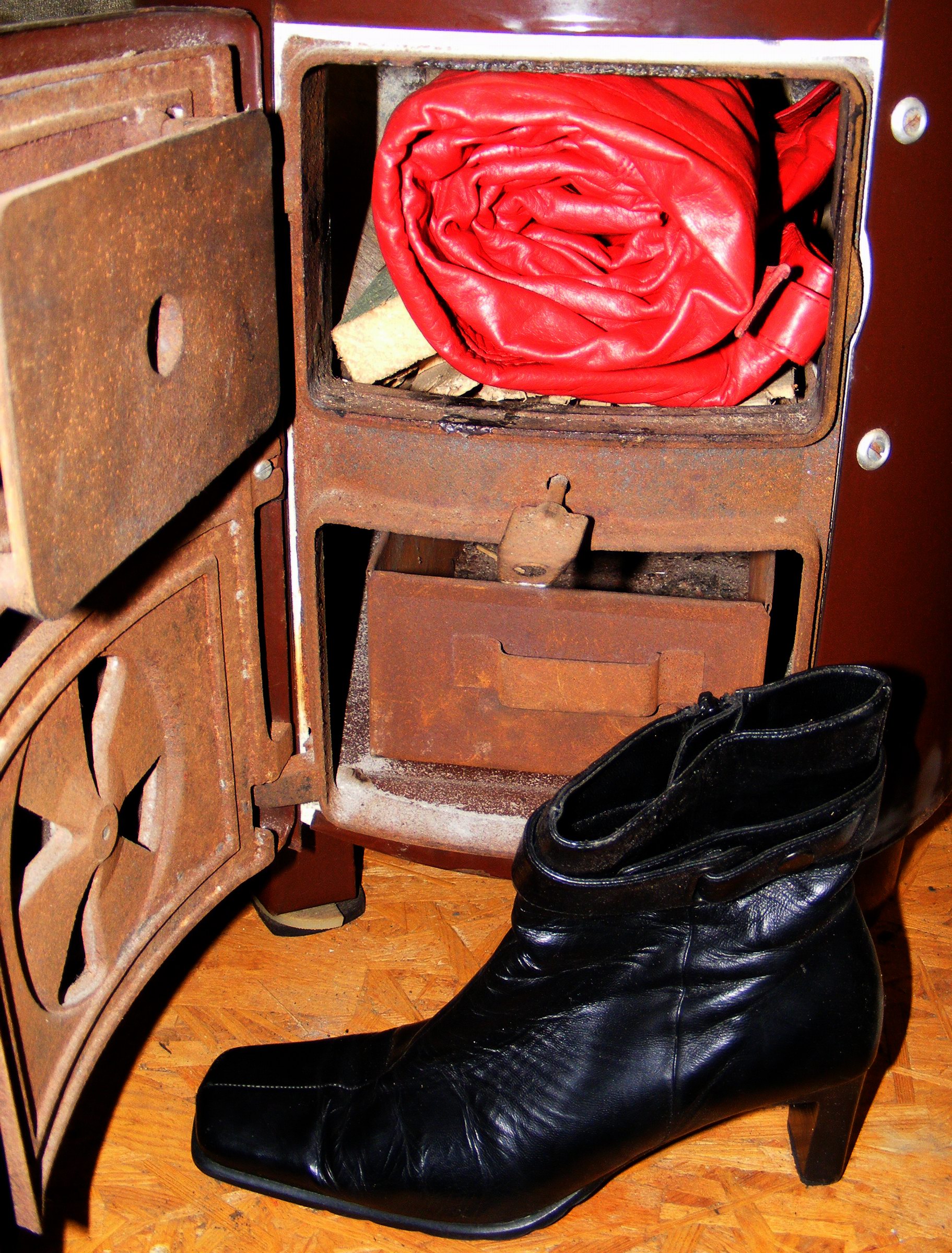 So haben sich bei ihr über die Jahre zwei Säcke voll Schuhe angesammelt, bis eben nun die Zeit reif war, endlich eine Entscheidung zu treffen. Wenn man selbst keinen Ofen bzw. Feststoffheizung zu Hause hat, wird dann eine solche "Sammlung" zumeist komplett auf den Sperrmüll oder zu Bekannten zum Verfeuern gebracht. Diese meine Kollegin hat sich dann für Letzteres entschieden, doch rein Interesse halber wollte sie sich das gern selbst mal Ansehen. Bisher hatte sie noch nie Schuhe verbrannt; außerdem hatte sie die gesackte "Ware" noch nicht wieder sortiert, vielleicht wäre doch noch das eine oder andere Paar "zu Retten".