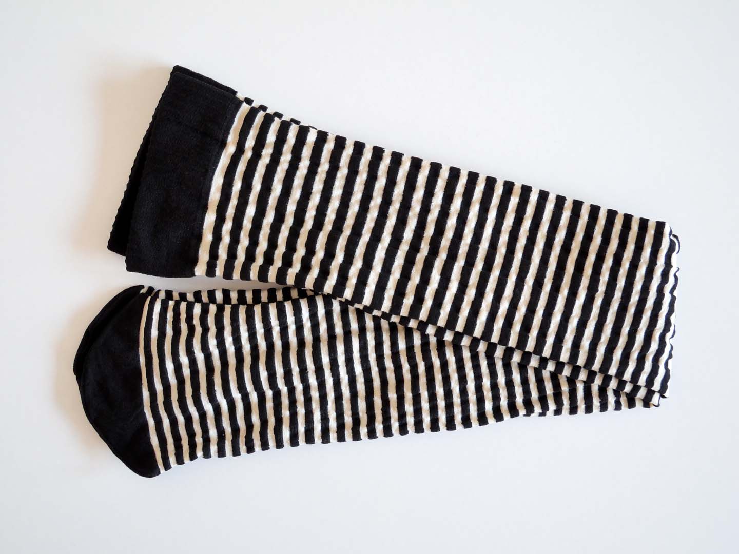 Schon vor ein paar Jahren, hatte eine Frau einige ihrer völlig intakten Strumpfhosen und Strümpfe aussortiert und weggeworfen. Vermutlich hatte sie für die bodeauxrot und violetten Strumpfhosen, und die schwarz-weißen Strümpfe einfach keine Verwendung mehr. Letztlich ist alles in der Waschmaschine gelandet und erhalten geblieben.