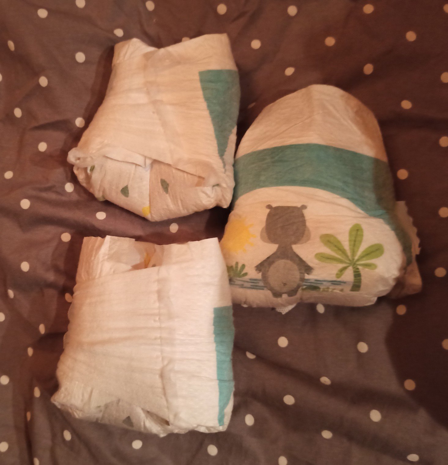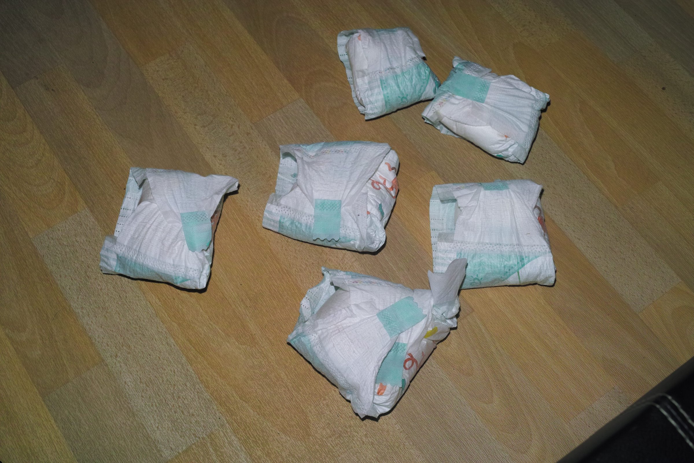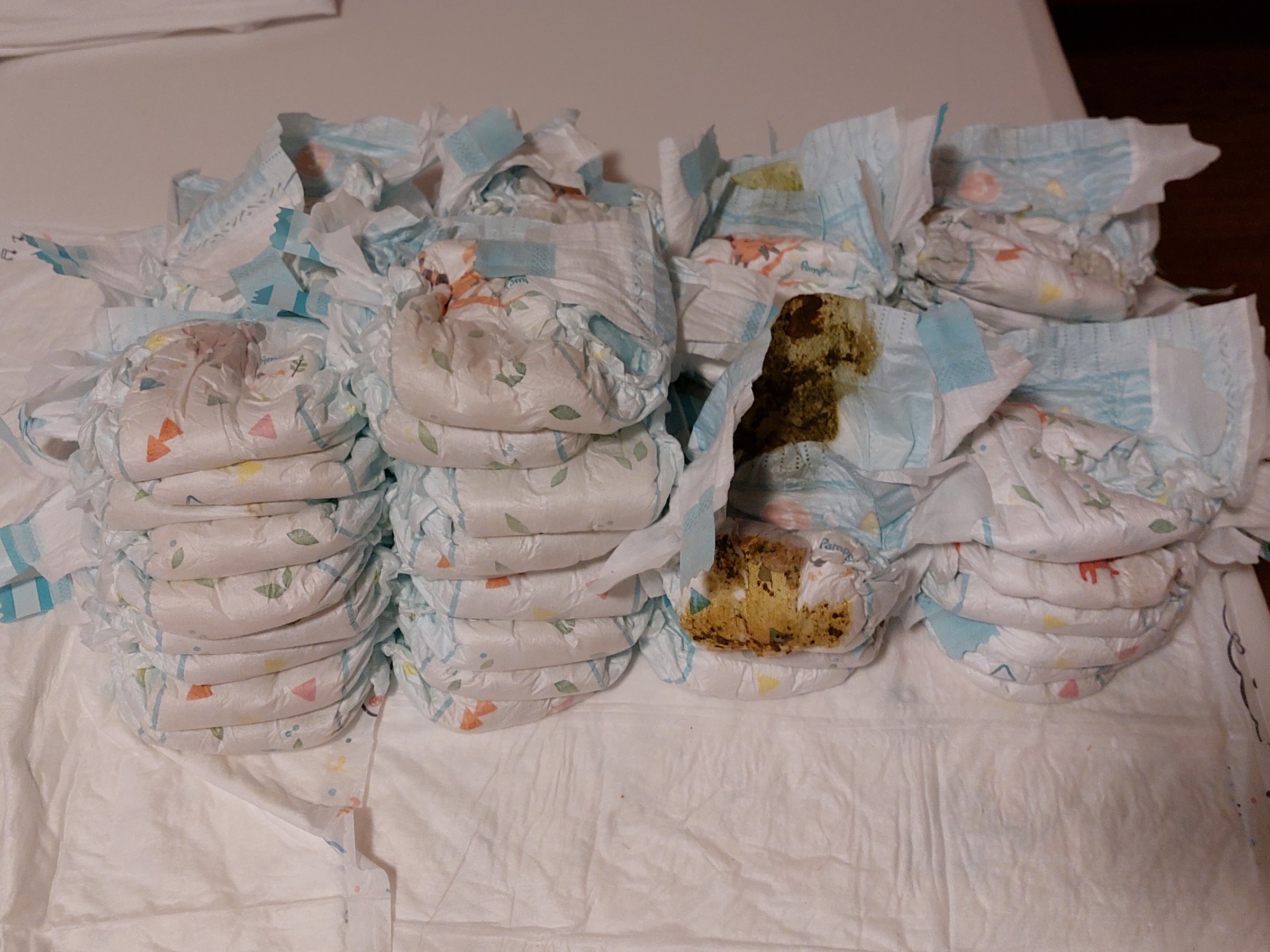Die Tochter meiner Freunde hat bis kurz vorm 5. Geburtstag 24/7 Pampers getragen. Hier ein paar Windeln, die ich kurz nach ihrem 4. Geburtstag gerettet habe.