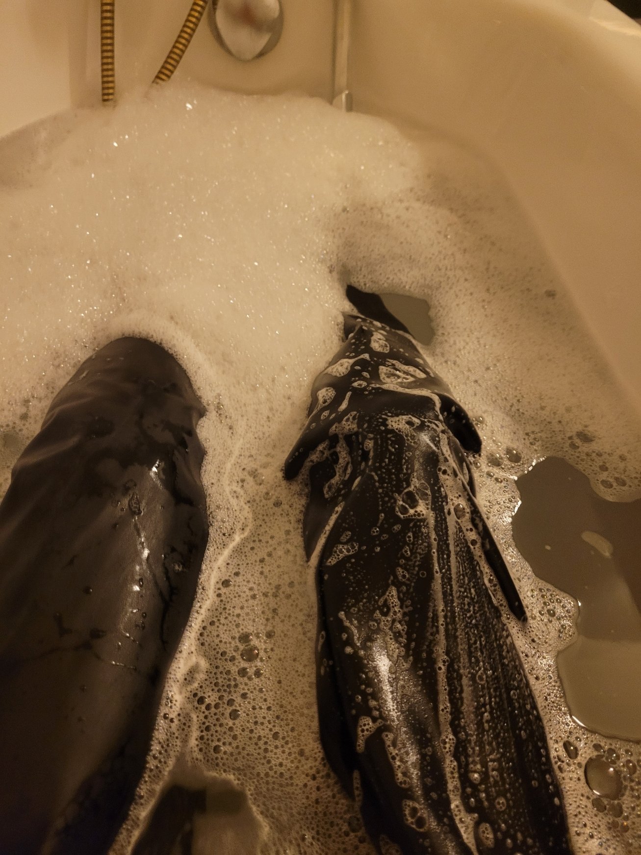 Hallo. Ich bade sehr gerne in Lederhosen. Vorallem das Gefühl beim aussteigen, wenn sich die Hose richtig an die Haut sauft find ich dabei sehr angenehm. Kann das Bild leider nicht hochladen ist zu groß....