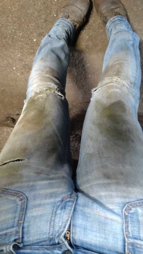 Einsauen, vermodern, verschlammen und verfärben, crushen; tragen, bis nichts mehr geht.