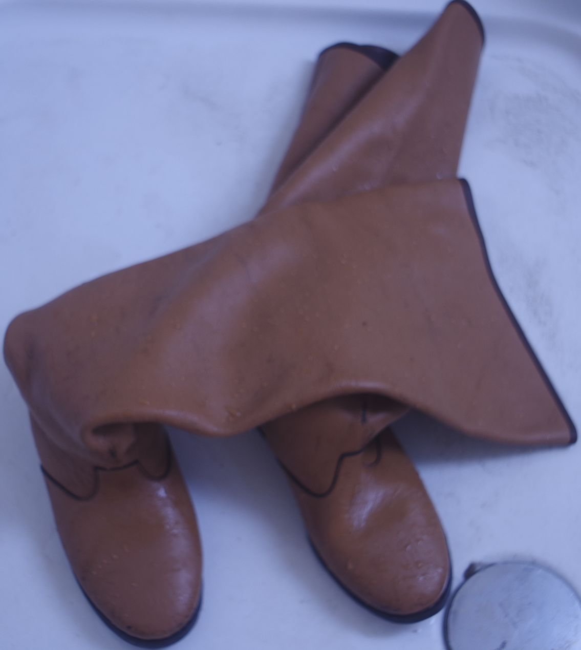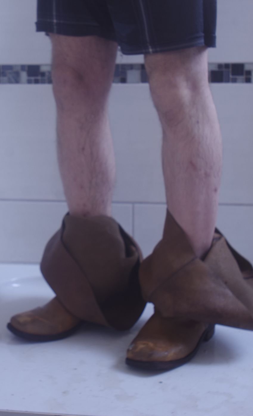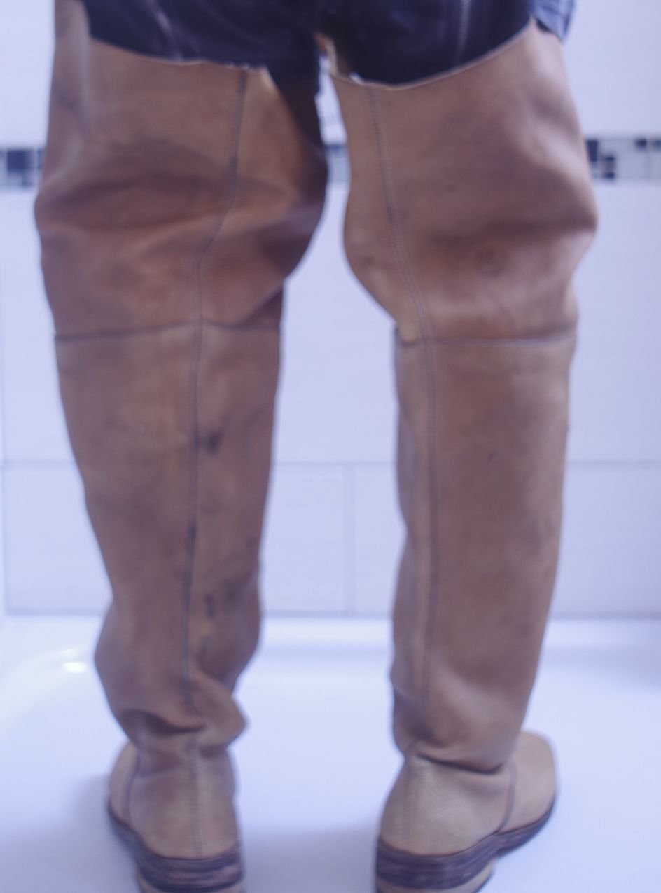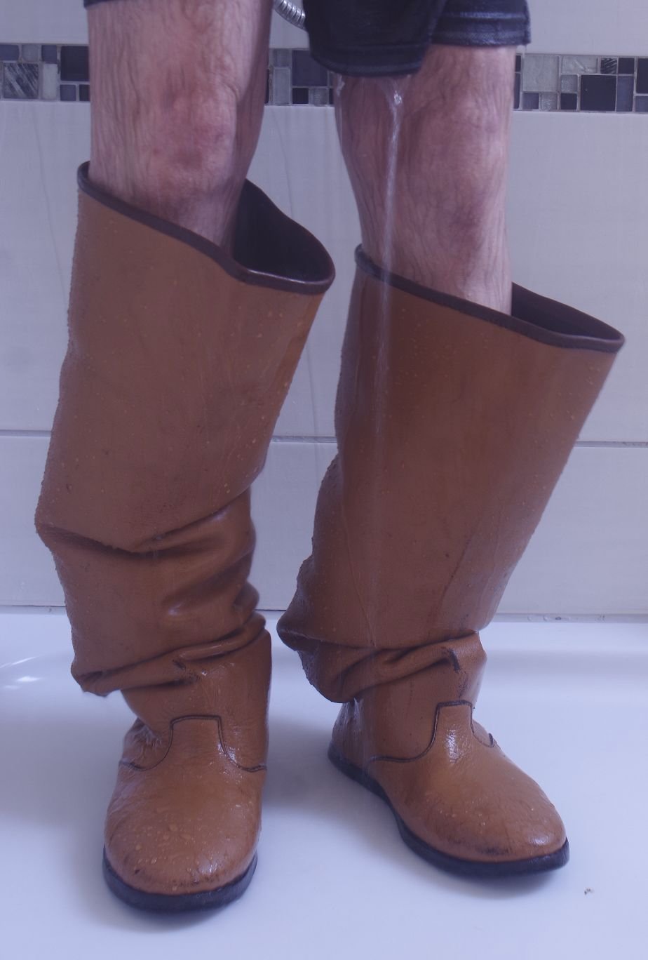 Schau wie die hohen Schäfte als nasse Lederlappen tief herunter rutschen.