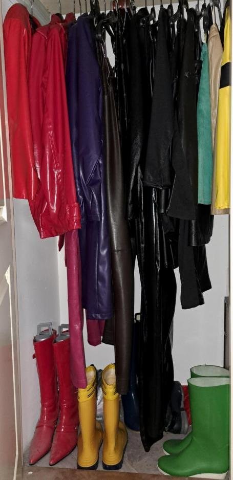 Jetzt spielt Sandra ein richtig fieses Spiel, denn sie wollte, dass ich mir rote Gummistiefel kaufe und meine roten Lacklederklamotten anziehe.