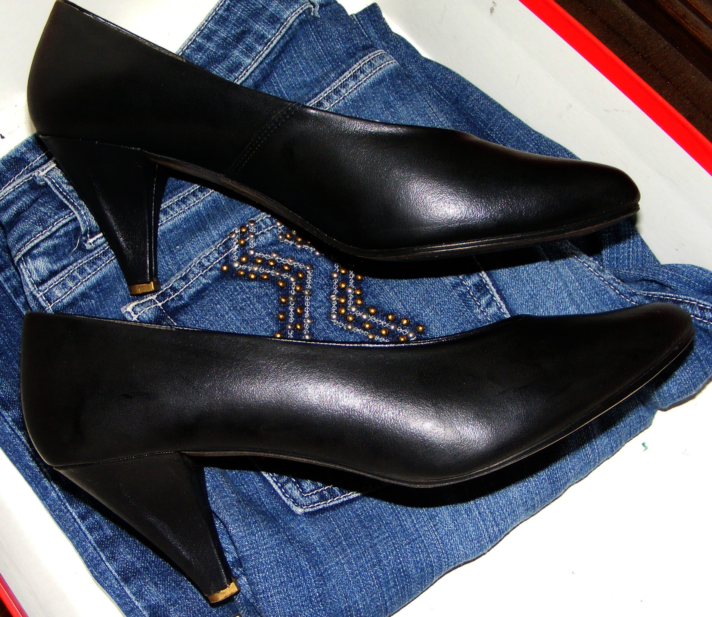 Der größte Teil der Schuhe die man in Mülltonnen findet, sind wirklich nur noch Müll, auch wenn es auf den ersten Blick noch ganz anders aussieht. Bei den oberen, seinerzeit sehr verbreiteten Synthetik-Pumps, waren die Absätze total ruiniert, bei den Lederpumps darunter ebenfalls, außerdem waren die Sohlen an den Spitzen durchgelaufen, was man nur noch sehr selten sieht.