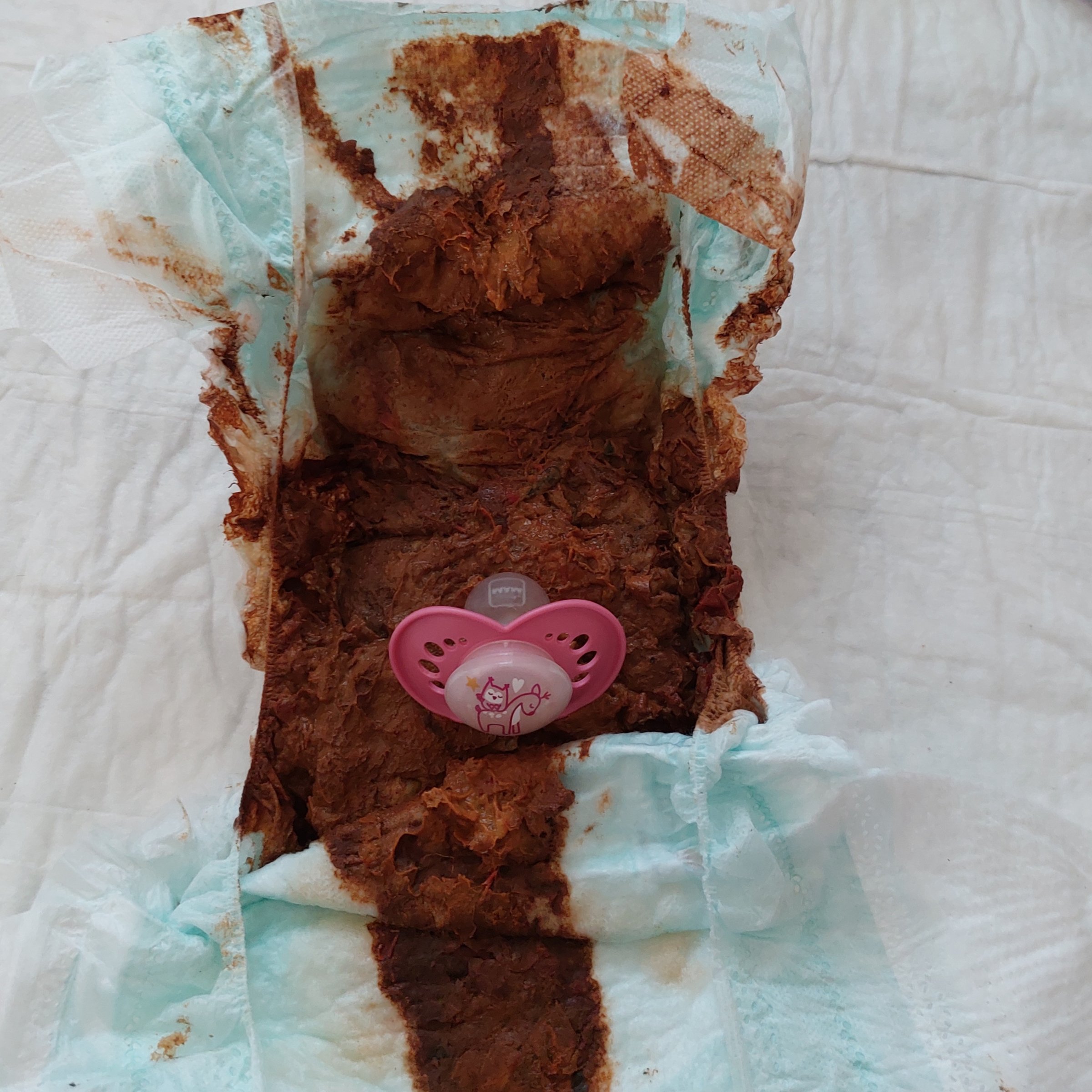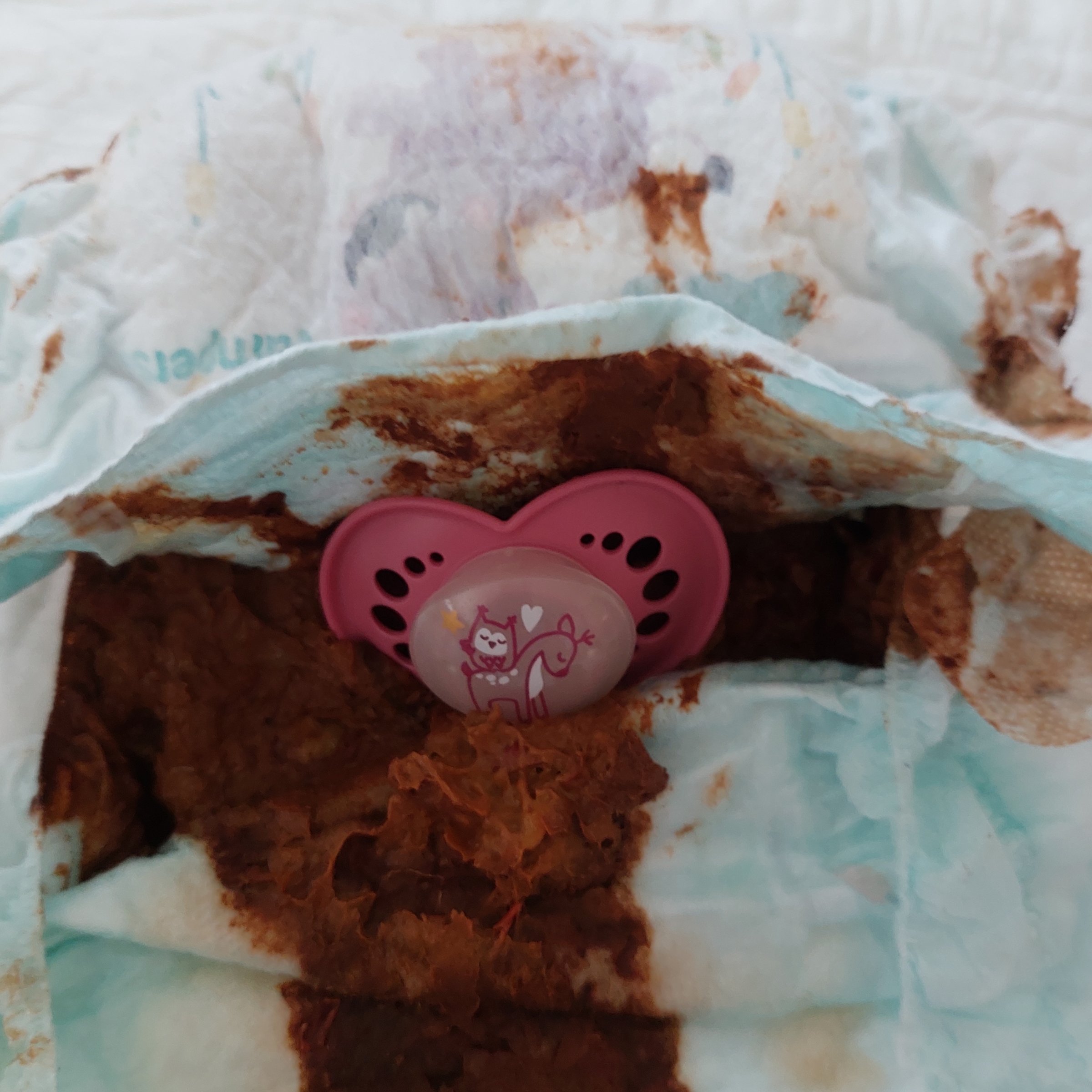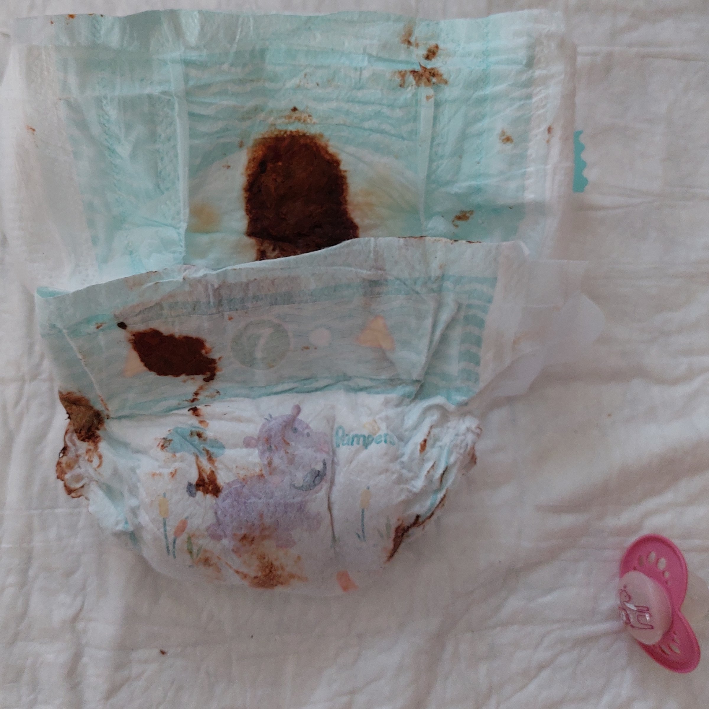 Haben erst wieder eine richtig schön voll Windel gefunden und einen pinken Schnuller