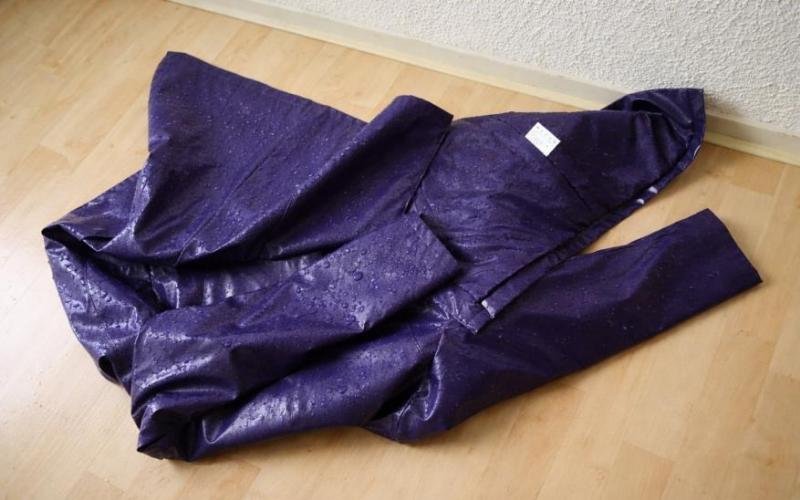 #Foto 10.16 Lila Lacklederjacke liegt auf dem Boden im Flur