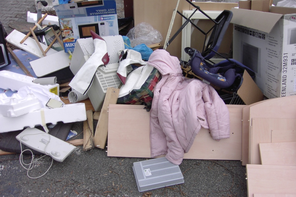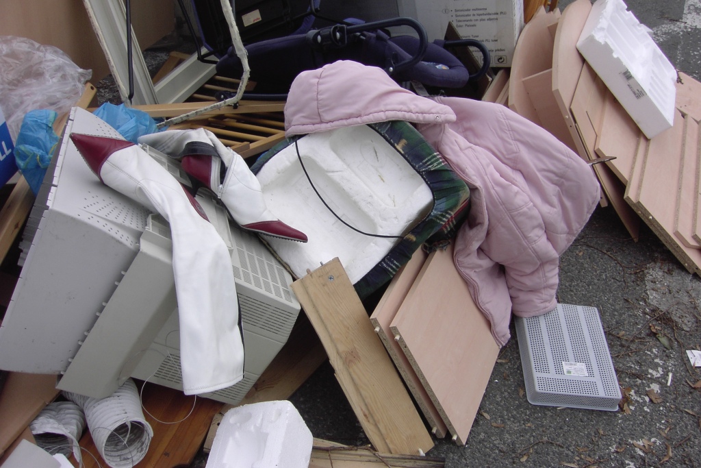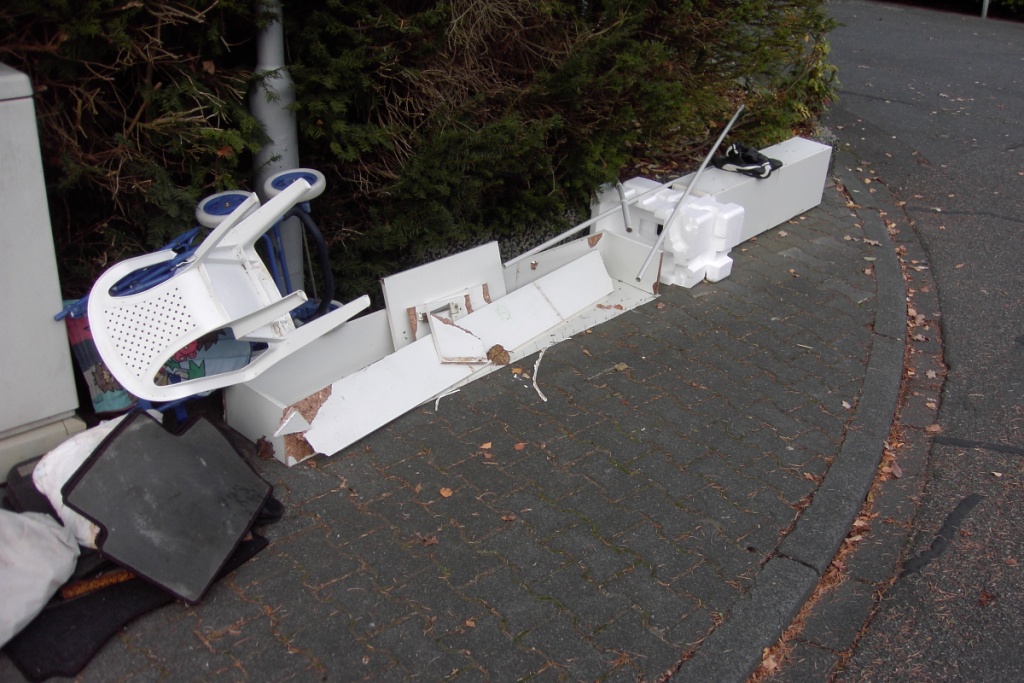 Eine Unart, Kleinzeug und Ekelmüll zum Sperrmüll zu stellen und die armen "Orangenen Engel" müssen den Dreck per Hand ins Müllauto werfen.