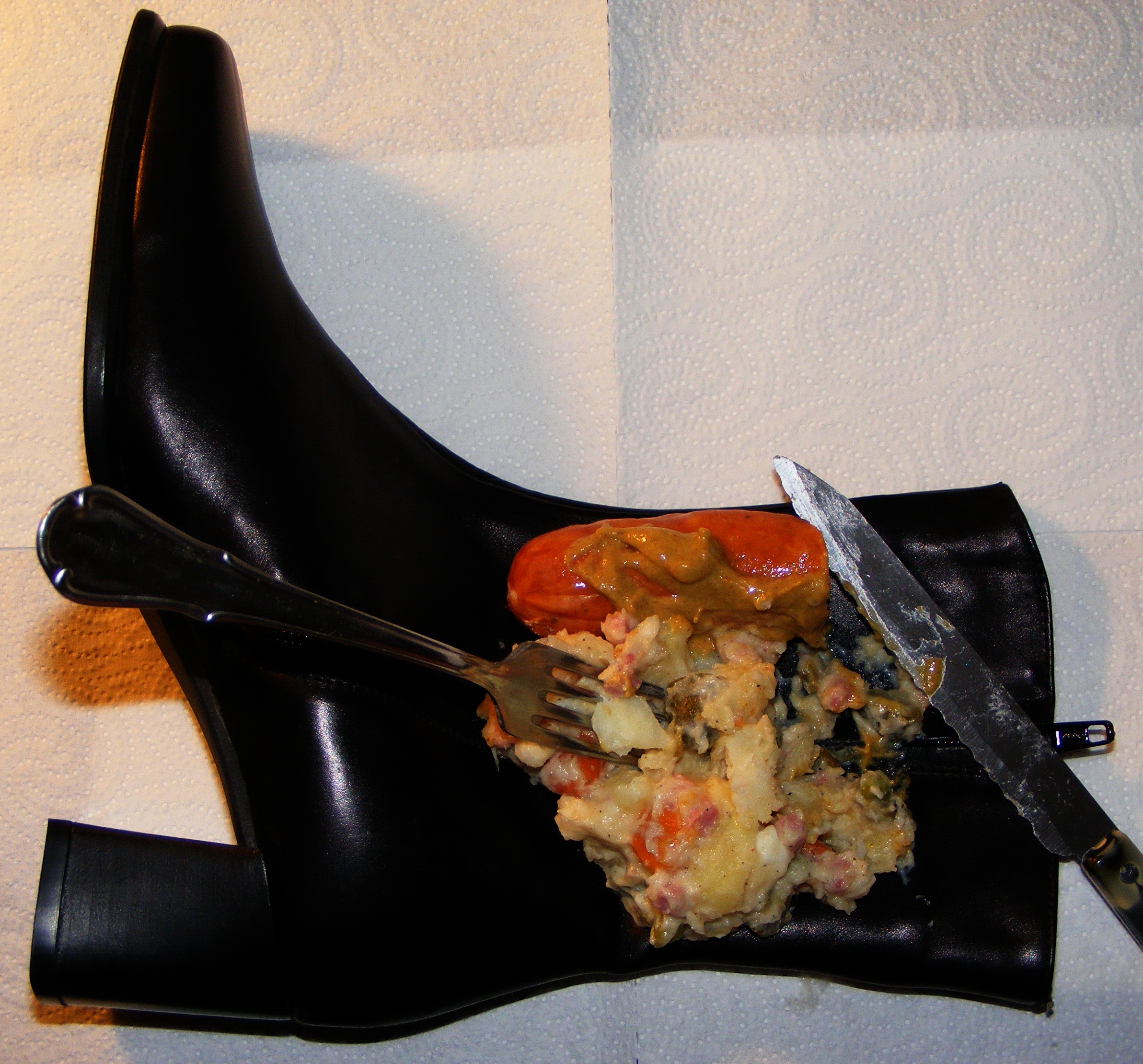 Ich war da völlig machtlos und mein Vater erwischte mich dabei, wie ich versucht hatte, die Absätze zu richten. Als er die Stiefel sah, ist er ausgetickt, genau wie meine Mutter. Zum Glück wußten sie, dass ich schustere.