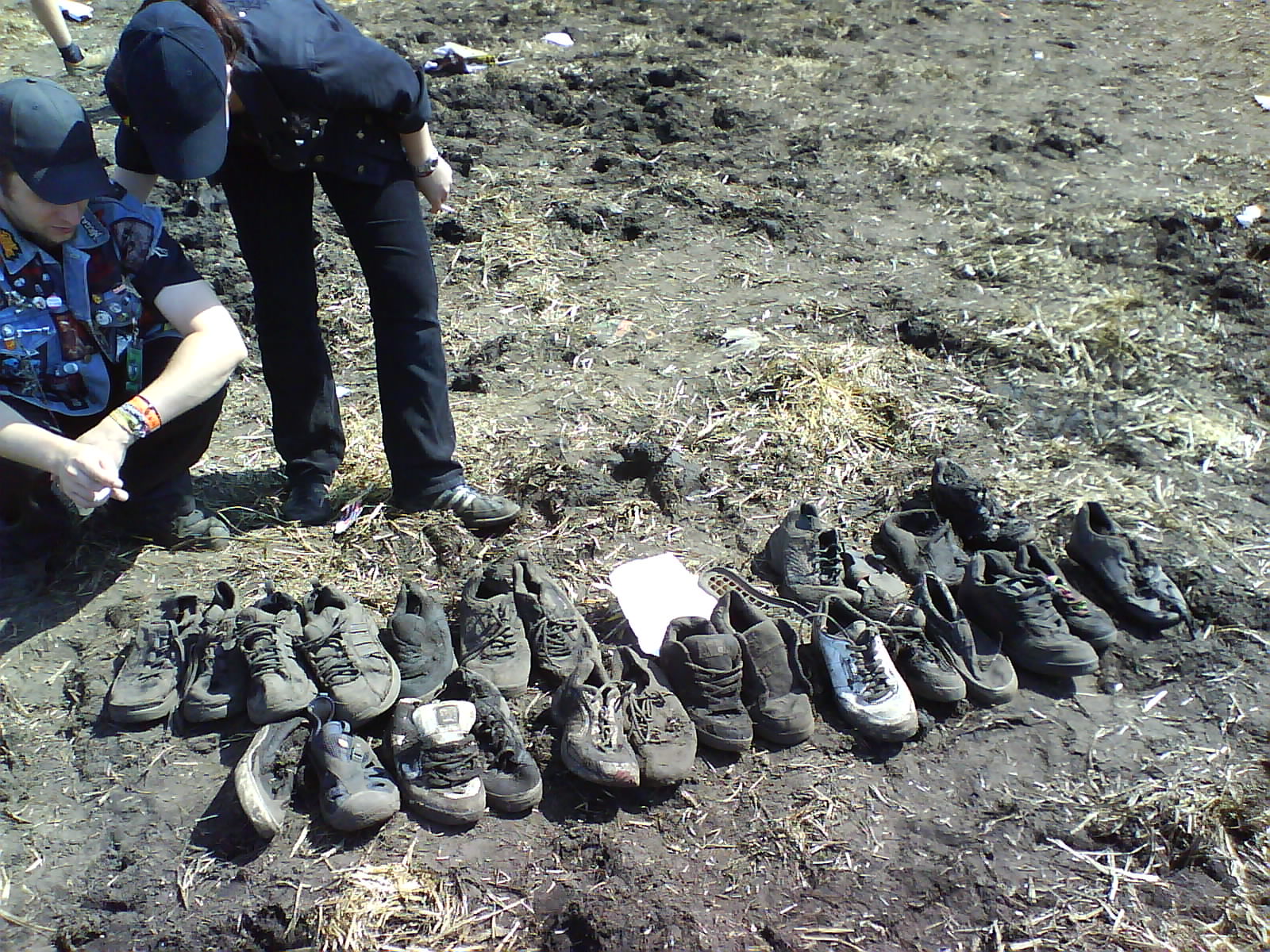 Da entstehen manchmal fiese Schlammlöcher, wo die Leute reihenweise bis zum Knie einsacken und dann ohne Schuh wieder rauskommen... Am nächsten Tag findet man da dann haufenweise einzelne, sehr verschlammte Schuhe.