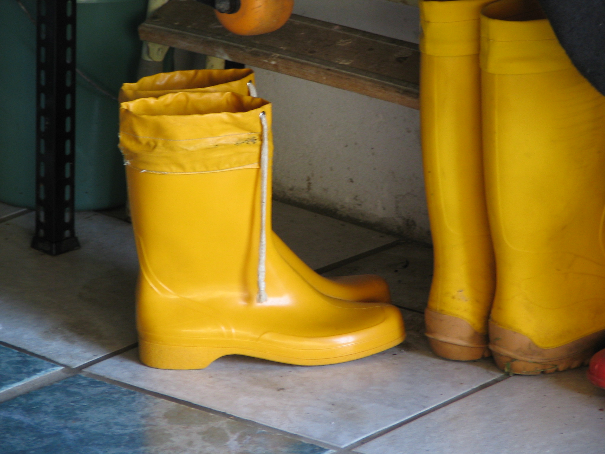 auch ich habe Kindheitserinnerungen an gelbe Gummistiefel mit Stulpe. :)