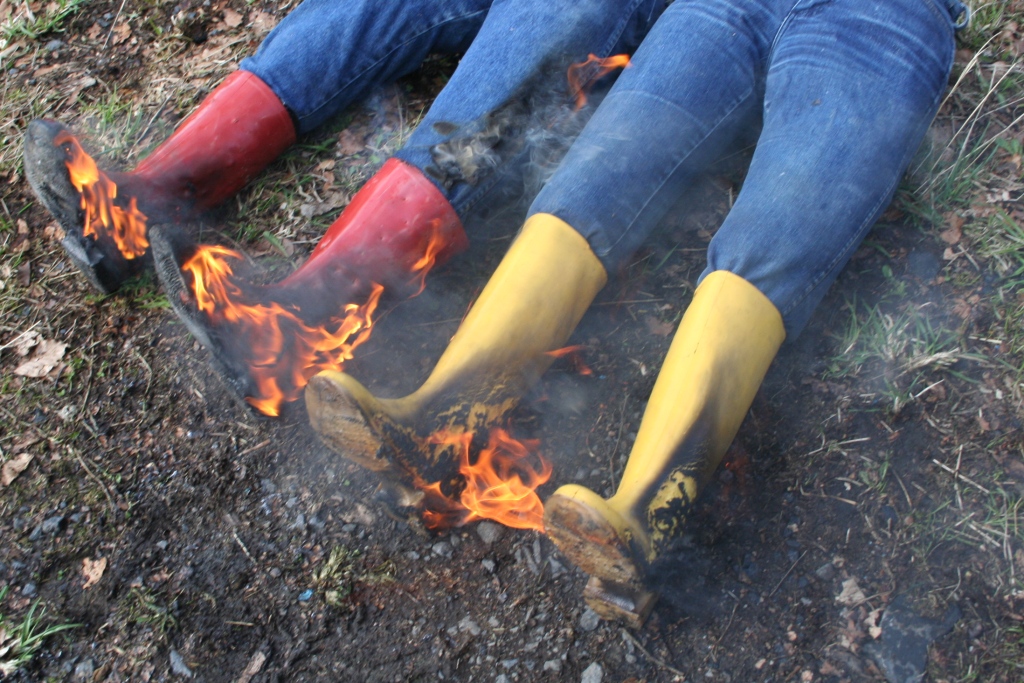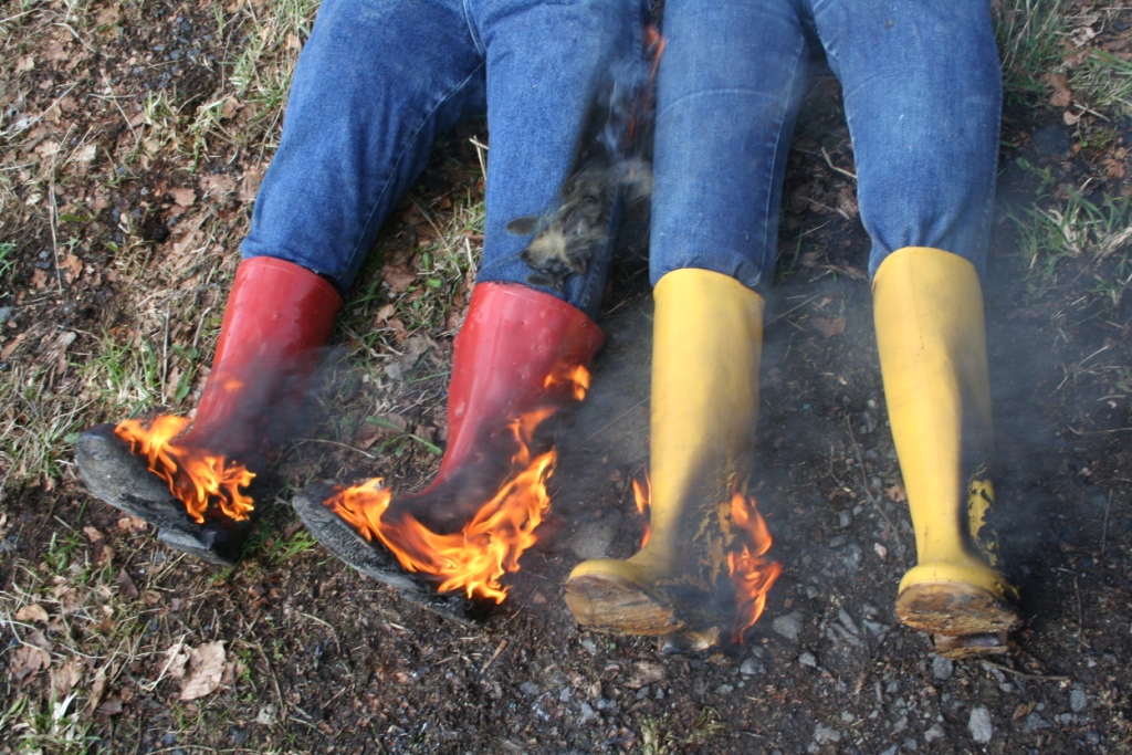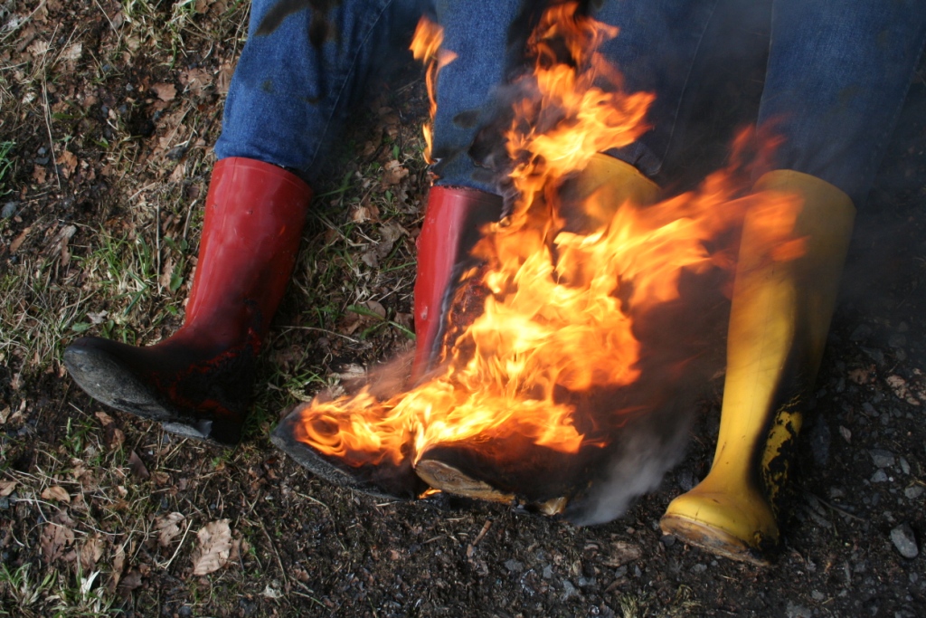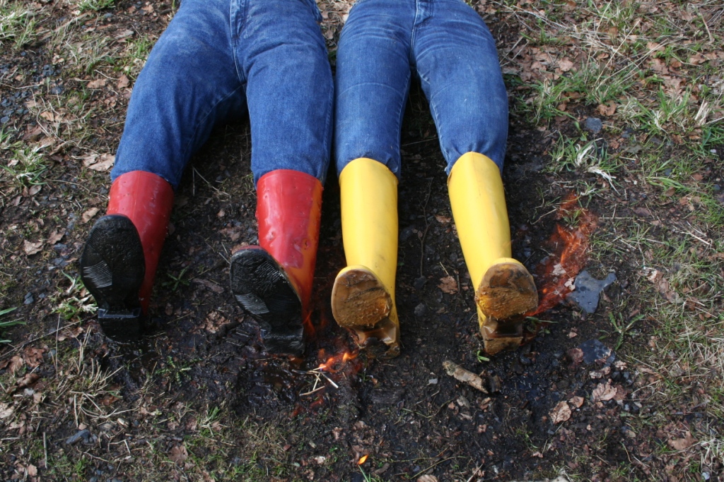 Nochmals einen Tag später begutachteten sie ihr Werk, trugen alles in den Garten und legten Feuer an den Gummistiefel. Hier noch ein paar Bilder dazu.