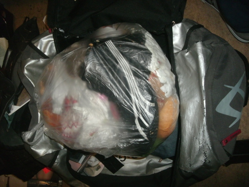 Es wurde auch langsam Zeit, denn in der Sporttasche hatte die Freundin meines Bekannten auch ihren Küchenmüll reingestopft. Es sollte ja eh alles gleich weg.