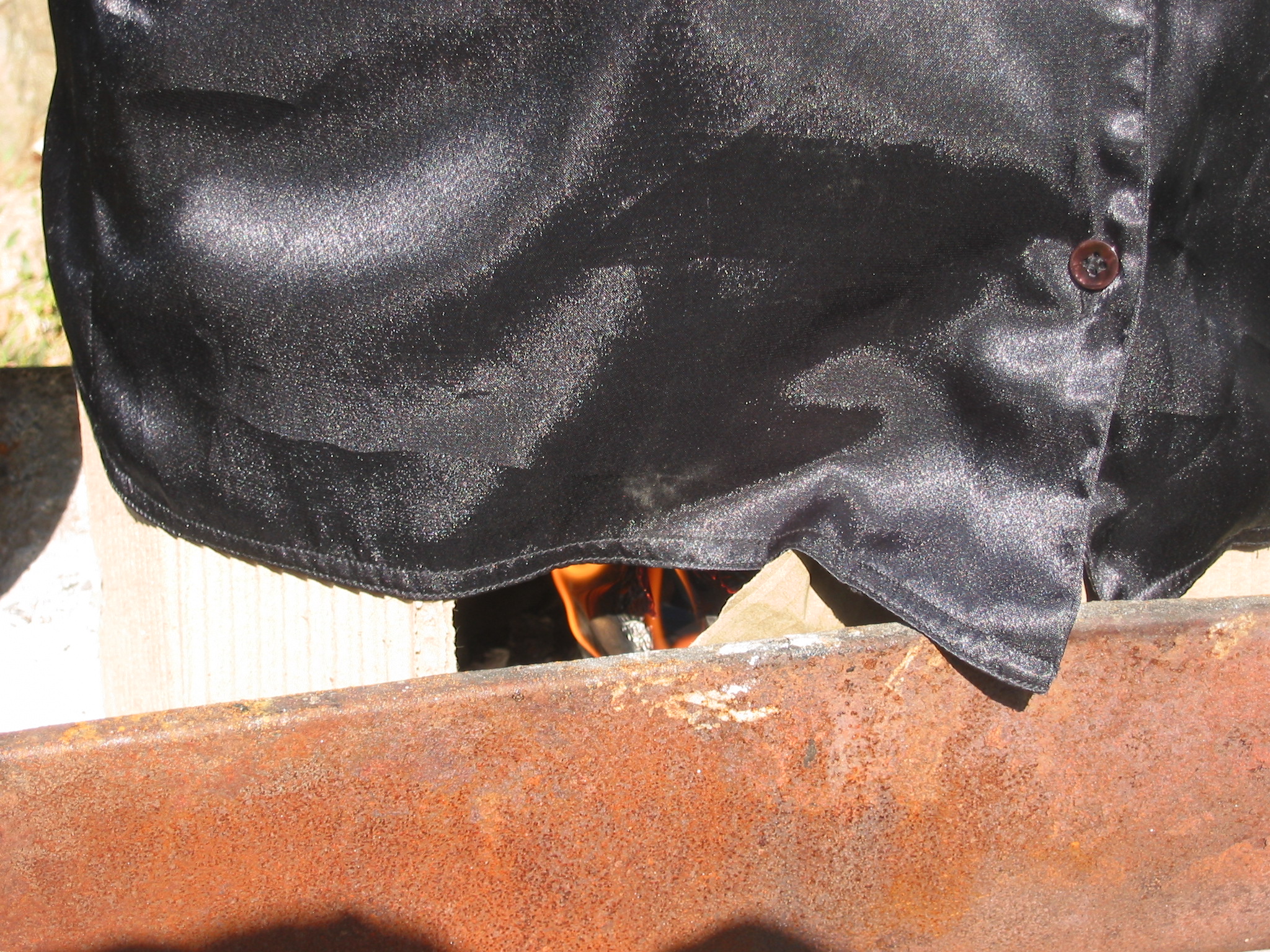 So genau weiss ich das gar nicht mehr, hehe, aber die Zerstörung an der Voderseite war es in irgendeiner Variation....klar, und das Hemd ist verbrannt...ebenso wie die zerfetzte Hose, aber davon habe ich keine richtig guten Fotos...