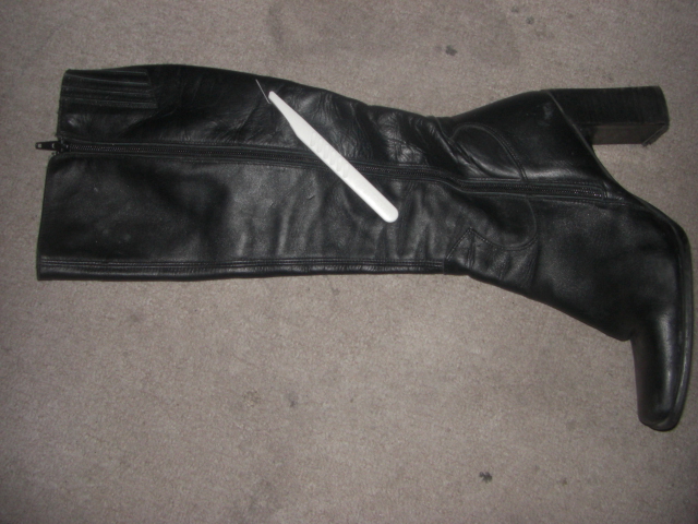 Mir persönlich würde es auch gut gefallen, die Stiefel erst naß und schmutzig (z.B. von Schneematsch :idea: ) zu sehen, dann wieder getrocknet mit Flecken und weißen Rändern und hinterher mit abgetretenen Absätzen restlos zerstört :twisted: