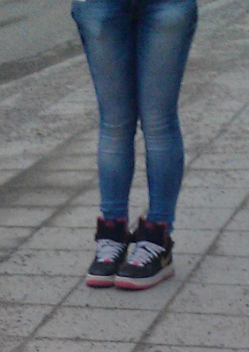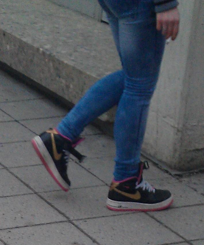 Sie haben viel Ähnlichkeit mit Nike Dunk High, aber wegen der Schnalle müssen es wohl doch Nike WMNS Air Force 1 High in einer selteneren Ausführung sein :idea: