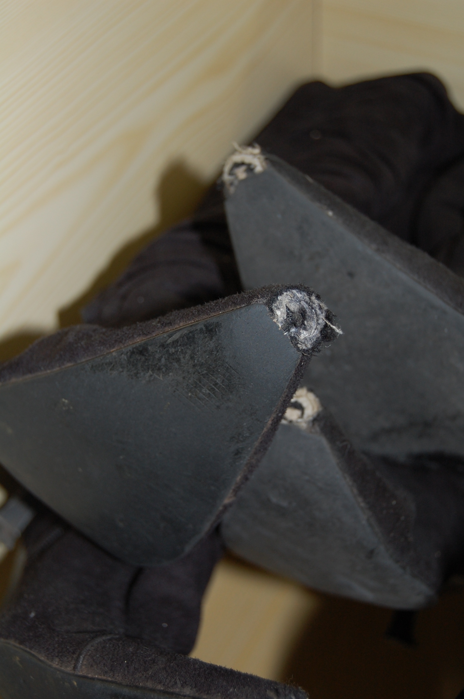 Doch selbst du hast deine total verlatschten supergeilen und heißgeliebten Pikes zuerst in den Waschmittelkarton und dann auf den „Monte Müllo“ lieblos geworfen. Und was hast du nun vor mit den endfertigen Billigstiefeln, die du nach deinem Bekunden nicht mehr reparieren lassen willst und die doch nun aus dem Schrank sollen
