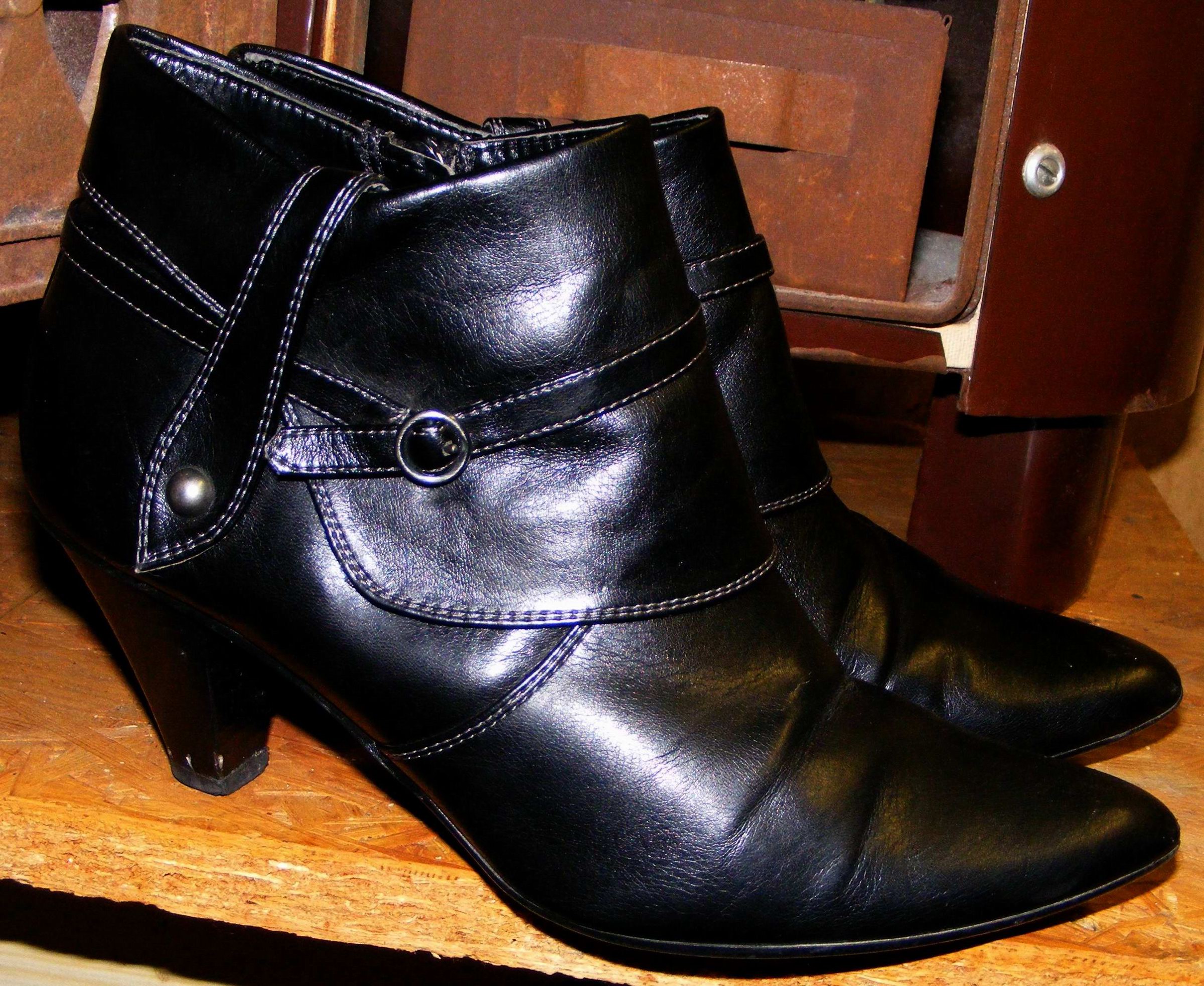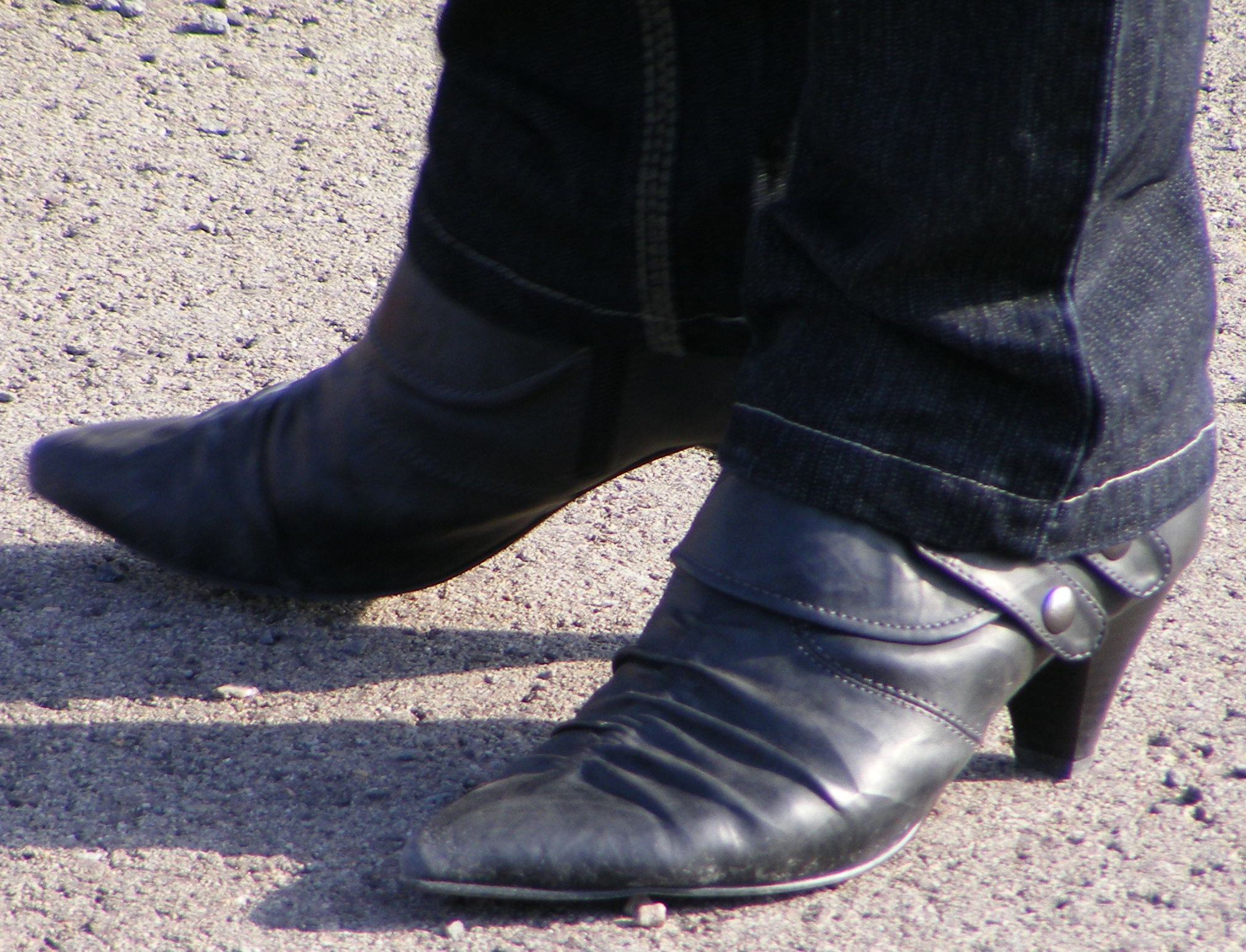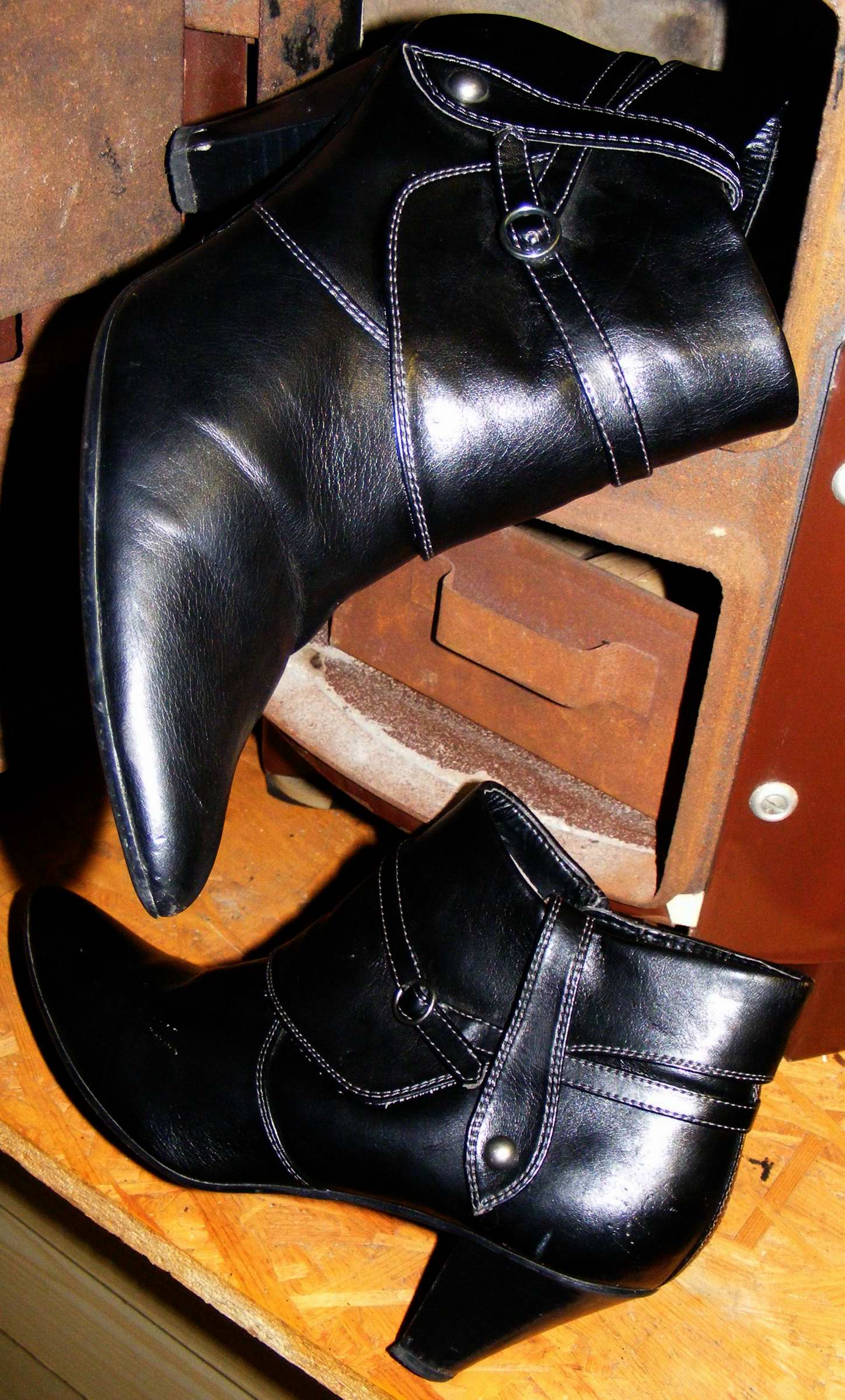 Apropos ... Die Schwarzen auf dem ersten Bild finde ich auch interessant. Leider versteckst Du sie unter Deiner neuen Jeans. Zu deren Top-Zustand wollen diese ungepflegten Stiefel gar nicht so richtig passen. Kannst Du uns bitte näheres zum Schicksal dieser Stiefel berichten?