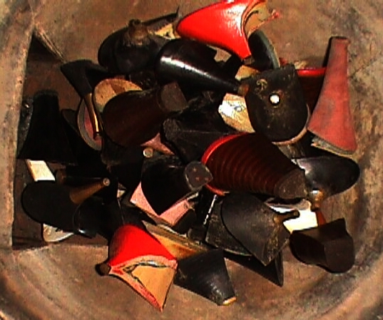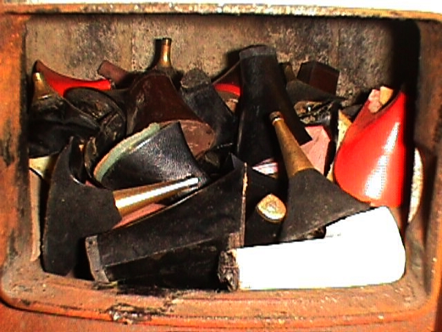 Auch die Fotos mit dem Berg Absätzen hat mein Interesse erregt. Wenn ich bedenke, dass an jedem Absatz einst noch ein Schuh gehangen hat... :lol: Und Du hast ihn (aus)geschlachtet.. :twisted: Die wertvollen Absätze dürfen Dir weiter dienen, der Rest hat nur noch Heizwert. :lol: