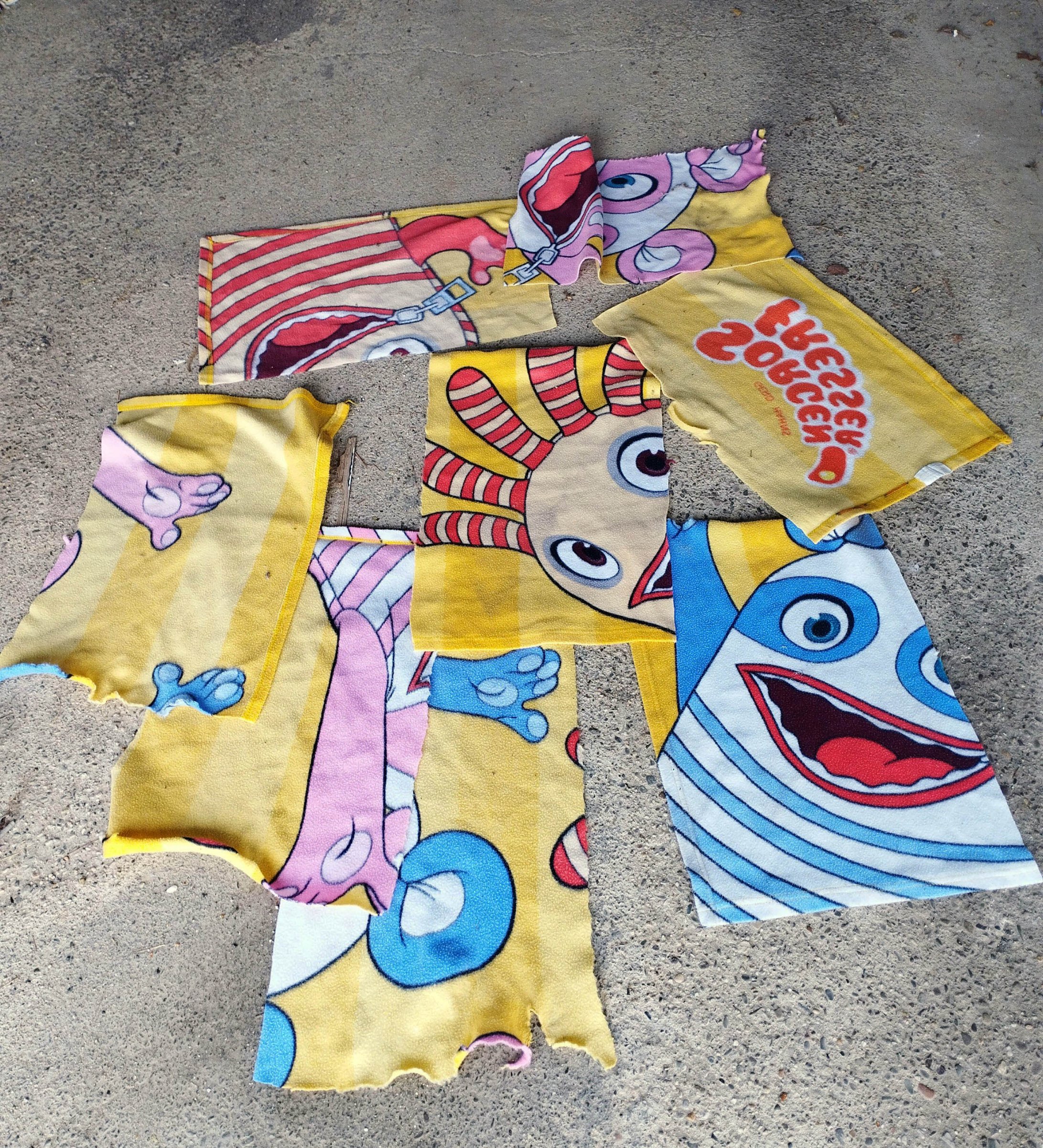 Babydecke zerschnitten und unter anderem als Windeleinlage benutzt