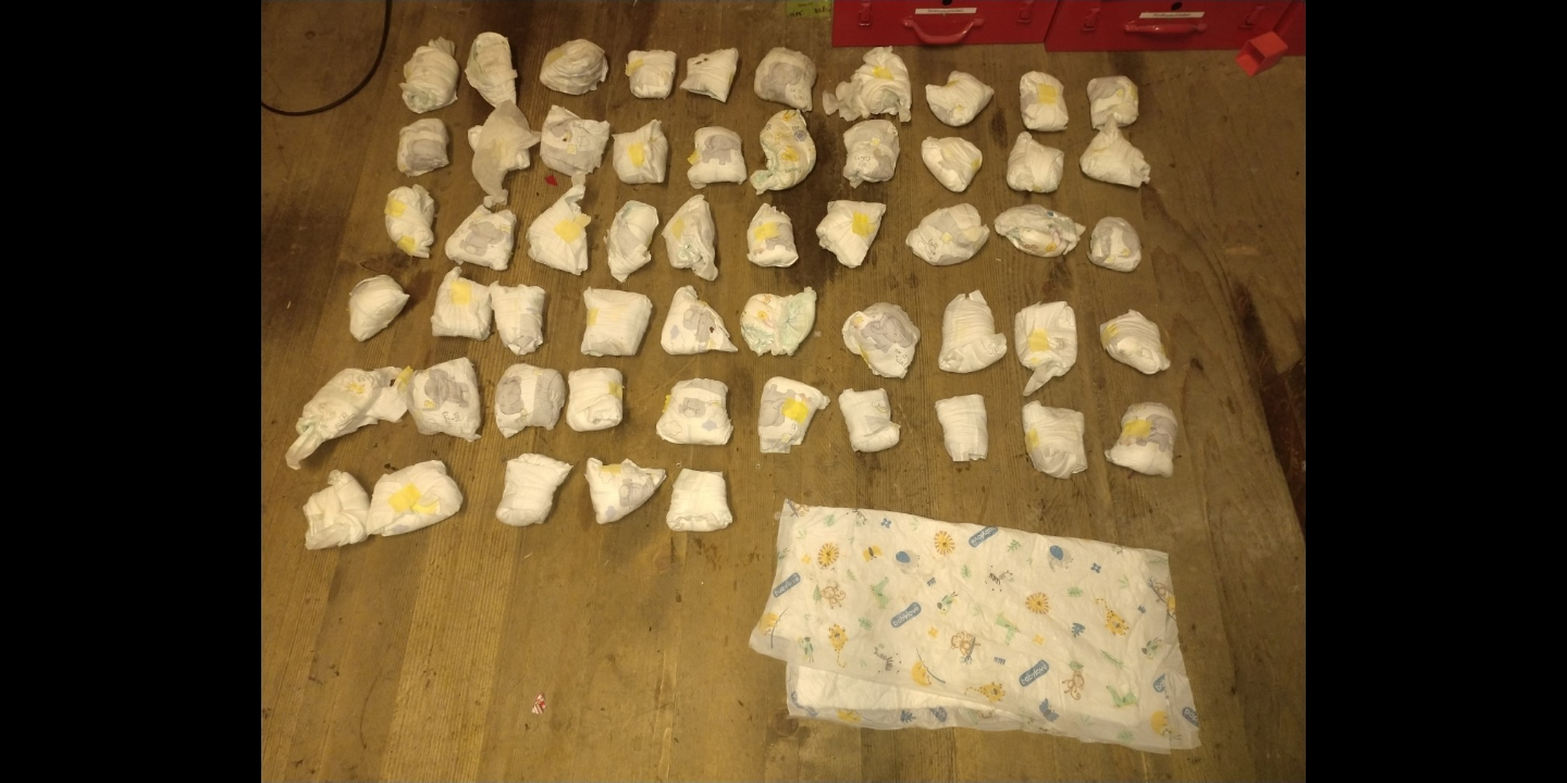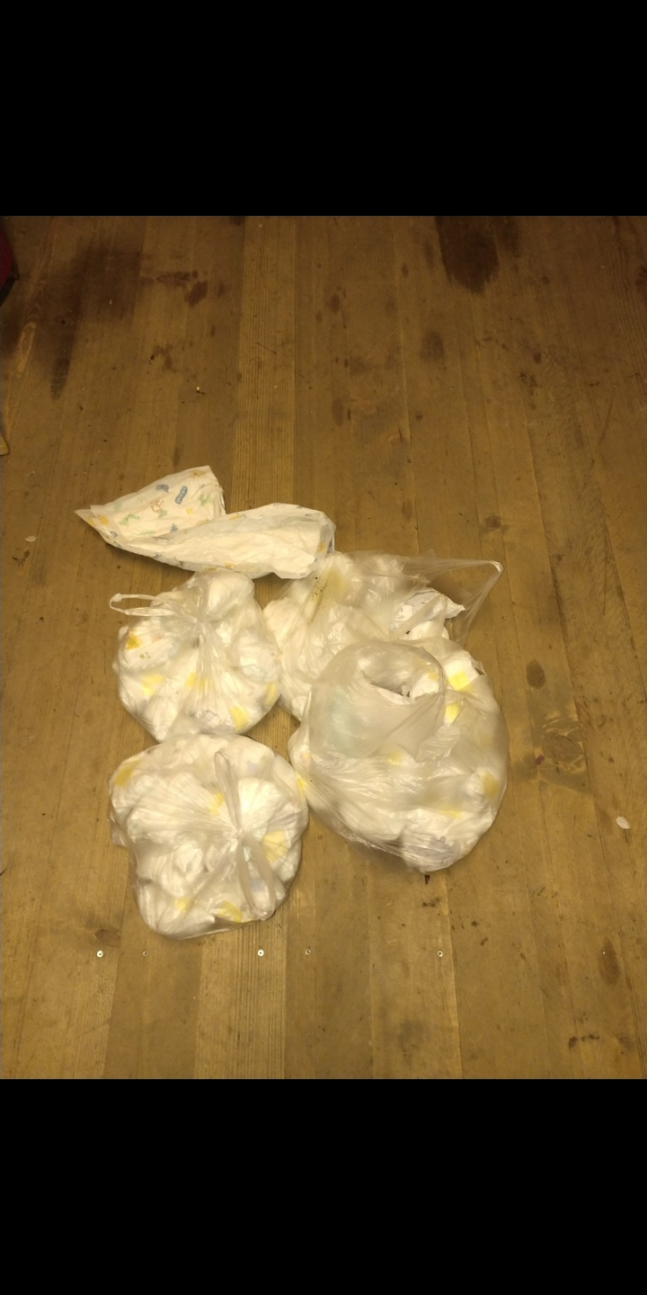 Ja, die Mami hat sich wirklich Mühe gegeben die Windeln sauber und Hygienisch in den Müll zu paken. Als hätte Sie gewusst dass die Windeln ein zweites Leben erhalten