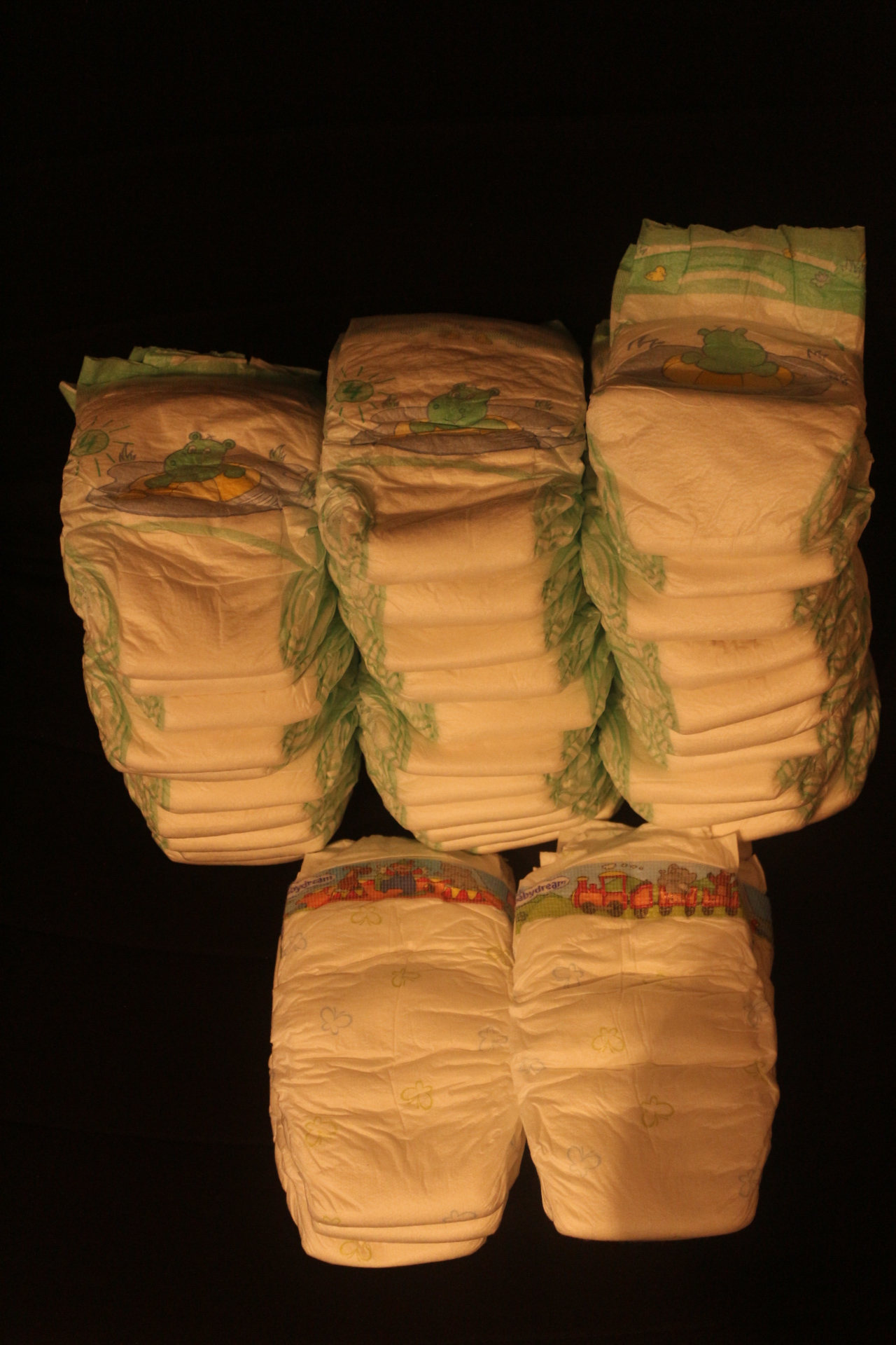 Es handelt um insgesamt 32 Windeln Gr.4 von Aldi (glaube ich) und 6 Babydream Windeln ebenfalls in Gr.4. Alle zusammen waren sauber zusammen in dem gelben Sack auf dem Foto in einer Mültonne. Ich frage mich echt, wer sowas wegwirft ? Man hätte sie doch in der Kita oder so verschenken können. Da hätten sich andere Mütter doch sicherlich drüber gefreut, wenn man nen bisschen Geld sparen kann.