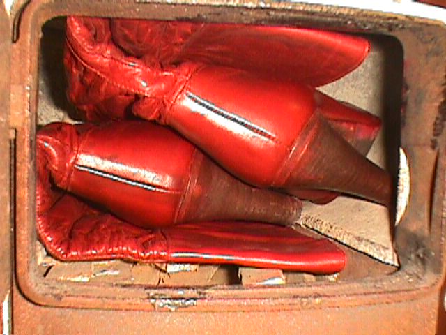 Die Zeilen mit den hellbraunen Stiefeln kann ich nicht oft genug lesen. Bitte schreib doch, ob deine Mutter noch weitere Schlauchstiefel oder Stulpenstiefel, vielleicht mit noch höheren Absätzen verbrannt hat. Hat sie ihre Entscheidungen nach dem Auspacken kommentiert? Welche Stiefel hatten gar keine Chance? Beschreibe ruhig die Farbe der Stiefel (jedes einzelne Paar, das dir noch in Erinnerung ist, ob sich im Laufe der Jahre die Mode geändert hat, vielleicht Stiletto-Absätze oder so. Wie war ihre Vorgehensweise vor dem Kochen oder vor dem Baden, hat sie, wenn zu viele Altschuhe anfielen, Stiefel vielleicht einige Zeit irgendwo zwischengelagert? Hat sie noch geschenkte Stiefel einige Zeit getragen? Was fühltest du, als deine Mutter entschied, ein oder mehrere Paar sehr schöne Lederstiefel, die du gerne gerettet hättest, fest entschlossen und unumkehrlich zu verbrennen. Hast du die Stiefelverbrennungen öfter beobachtet, musstest du einfach hinsehen, wie die Lederstiefel ein Raub der Flamen wurden?