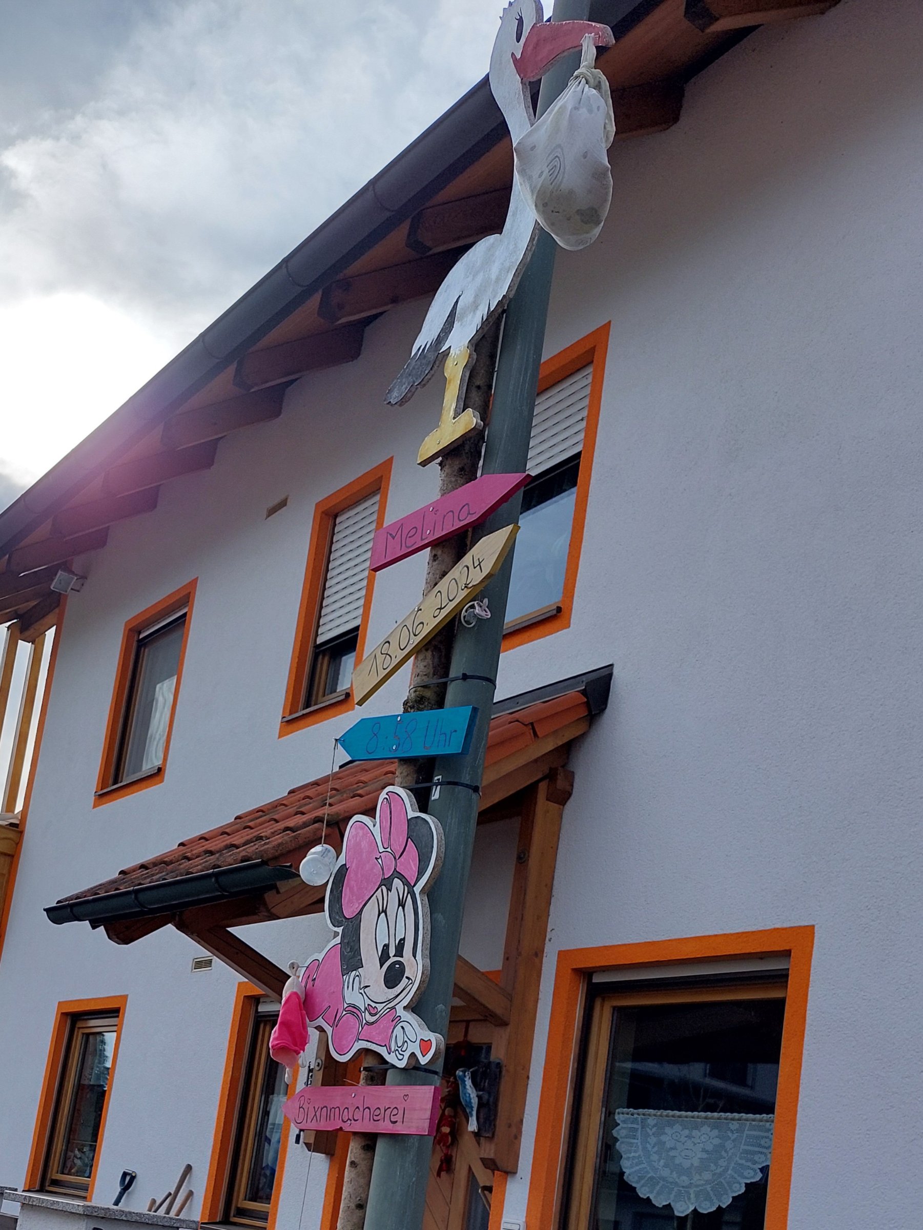 Aktuell hängen sie noch dran, aber wenn der Kindsbaum nicht mehr gebraucht wird, kommen die Flasche und die zwei Schnuller bestimmt in die Mülltonne